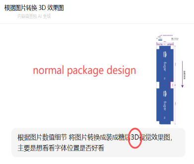 Caption: Left is the request to Duobao AI and final result with 3D is in the right we got what we want when we send to our client,they feel very happy.