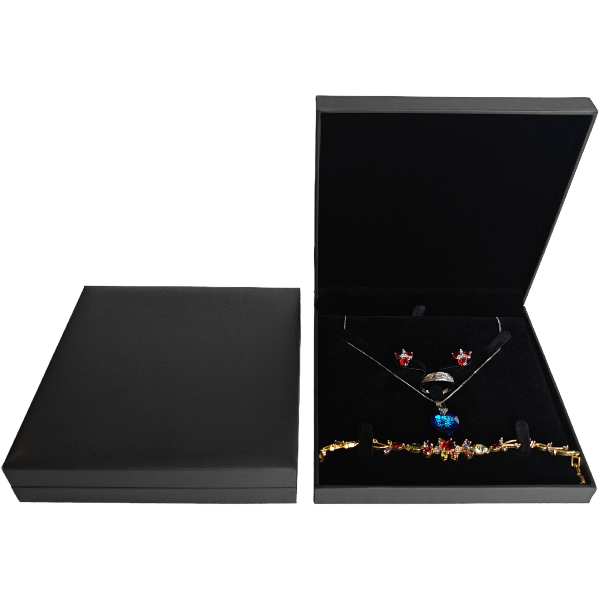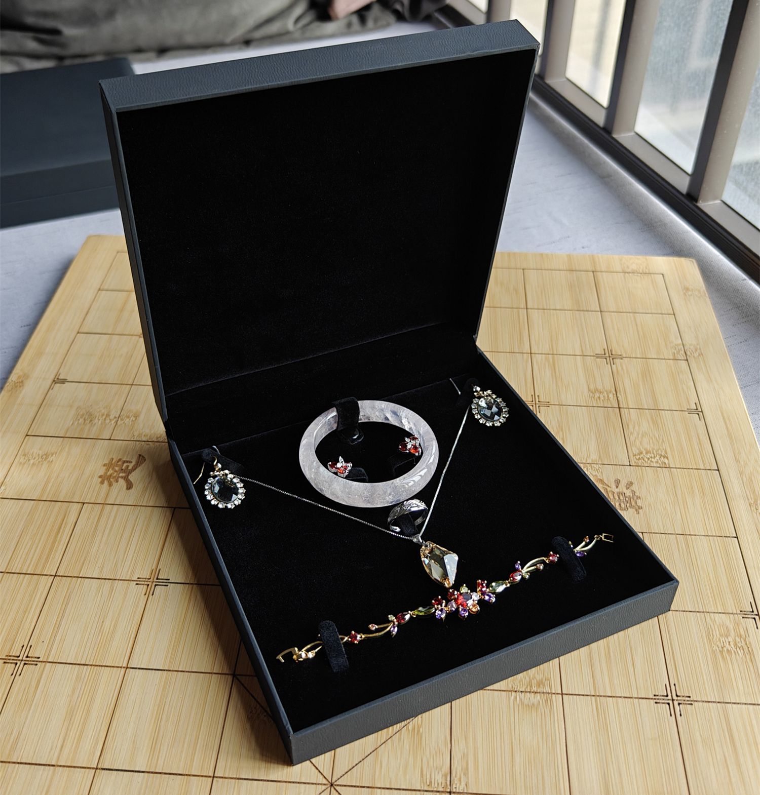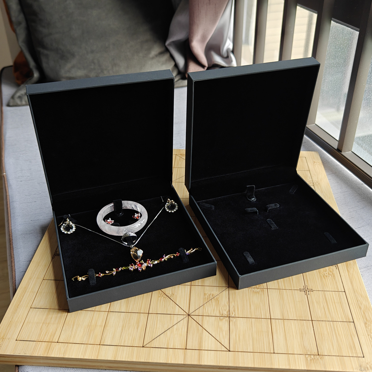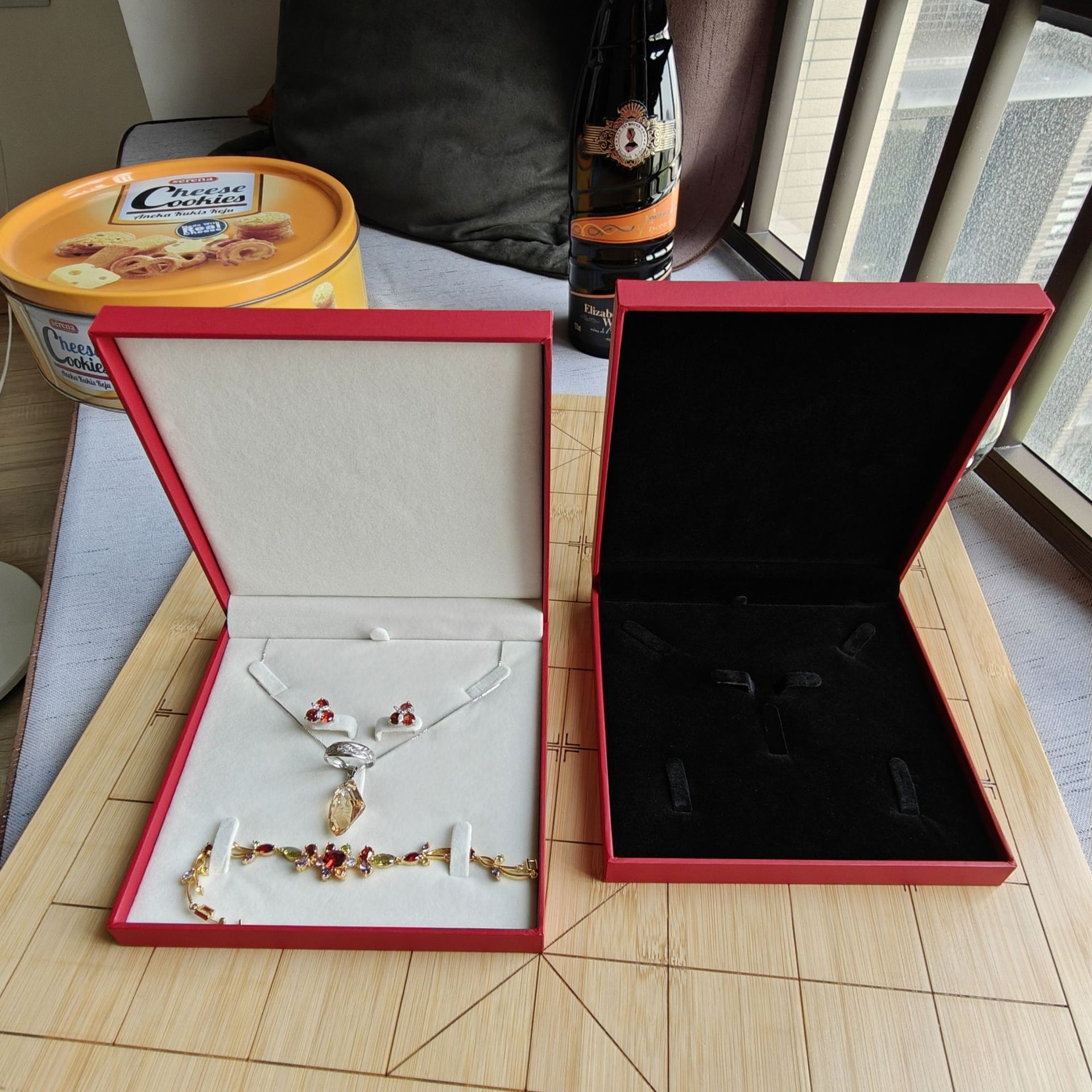【产品用途】项链、耳环、耳钉、手镯手圈手链都可以放里面展示,多用途款式套装盒。