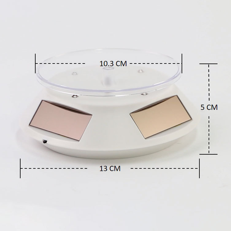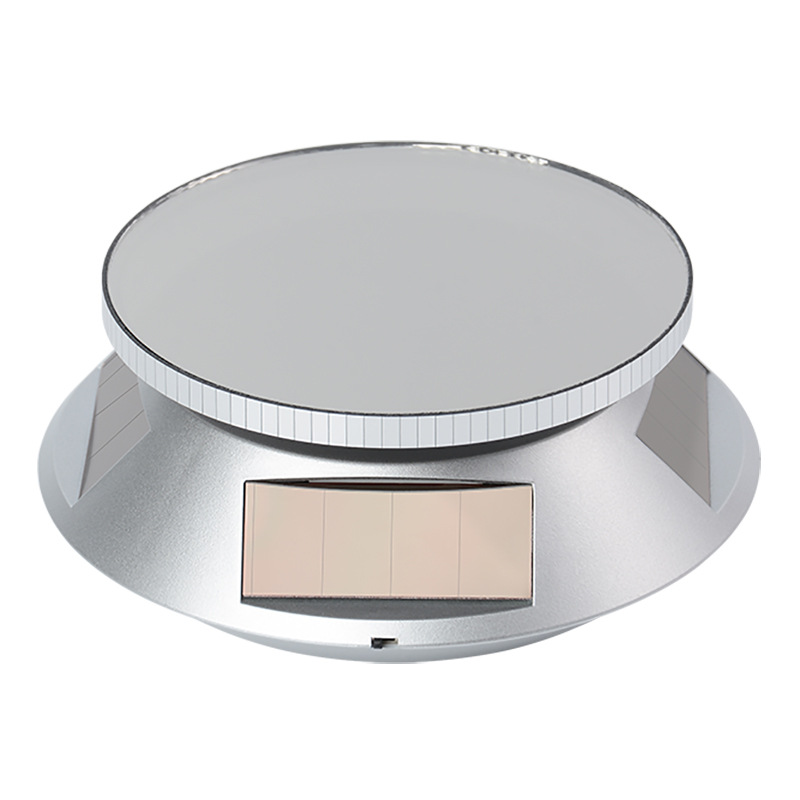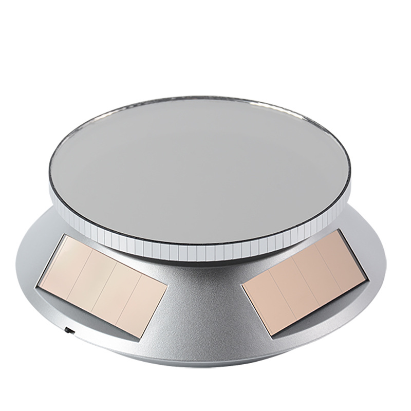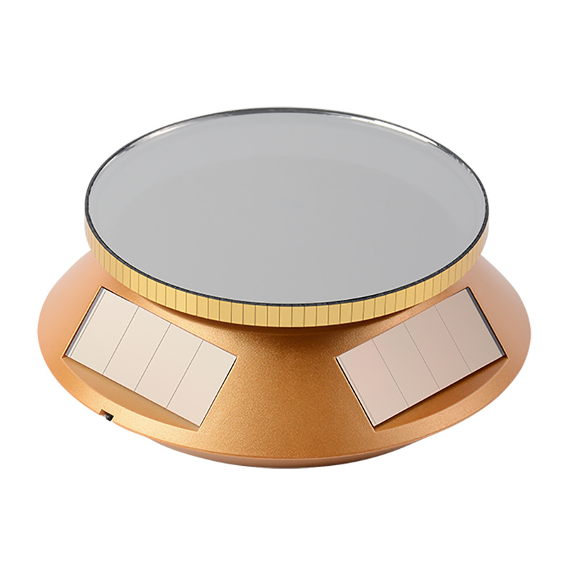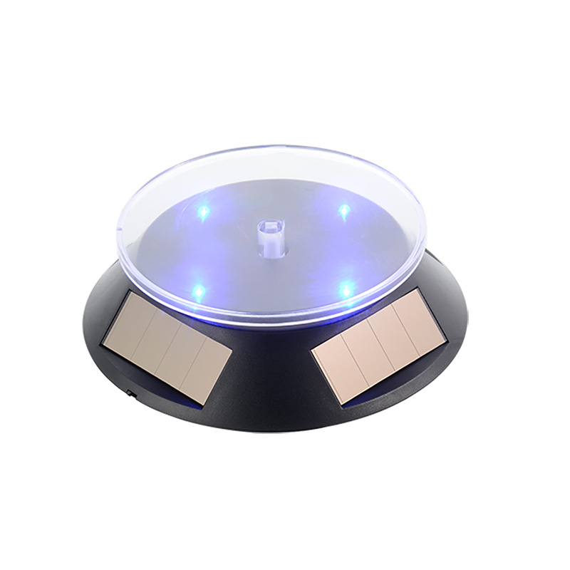 产品在自然光线下能够正常地工作,双向360度自动旋转展示。免用电池或插电,环保,节能,使用寿命长。光电转换工作原理,光强≥260LUX 在大于260LUX的光强下就能正常工作(自然光、普通照明灯都可)。 在光强为500LUX条件下,可以带动1000克产品,电池可以载重1200克。 旋转台上放置促销精品或个性化产品摆饰在店面、橱窗、办公室、柜台等公开场所,可吸引好奇的目光。除POP用途外,将心爱的小玩具或精致的小礼品或有纪念价值的小物品摆饰在家中的客厅、书房、卧室…等