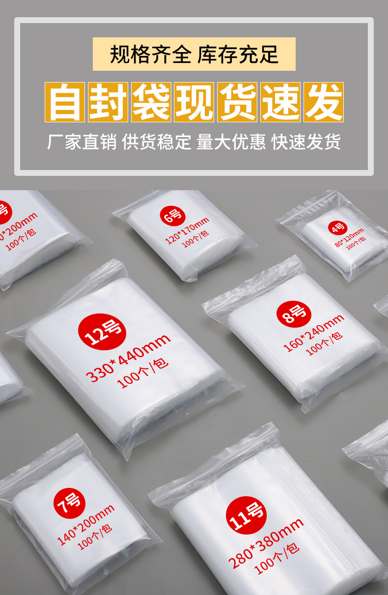 Factory wholesale No.5 self-sealing bag 10*15 thick transparent pe sealing bag small bag sealed jewelry packaging bag