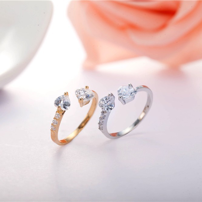Cross-Border Temperament Korean Style Double Heart Full Diamond Fashion Open Ring Live Mouth Adjustable Zircon Women's Ring Christmas Gift