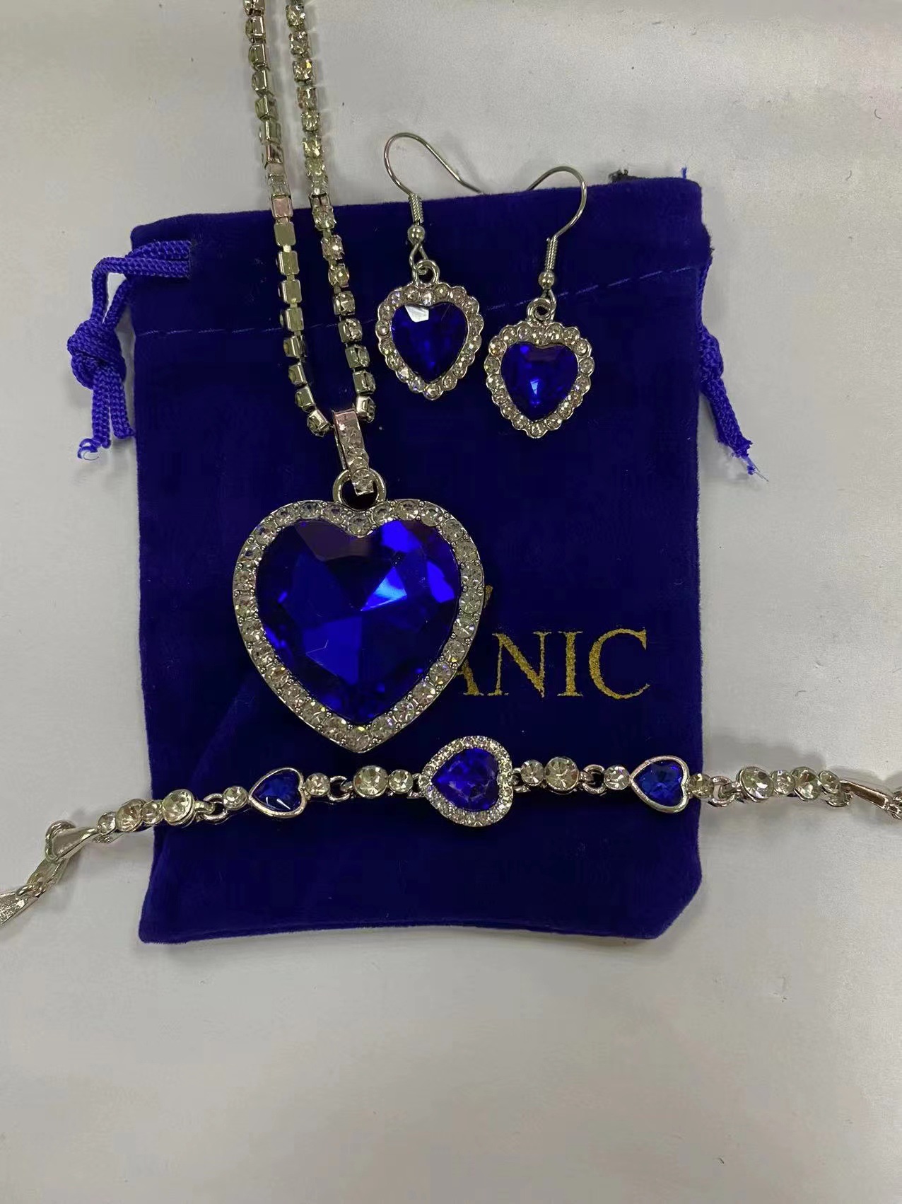 产品名称:海洋之心套装 产品颜色:耳坠款,耳钉款 产品尺寸:项链吊坠3.8*3.4cm, 配链42+5cm 耳钉:1.5*1.6cm, 耳坠“3.3*1.5cm 产品重量:项链39g/条, 耳坠4.8g/对,耳钉6g/对 产品材质: 合金 产品包装:独立包装 |