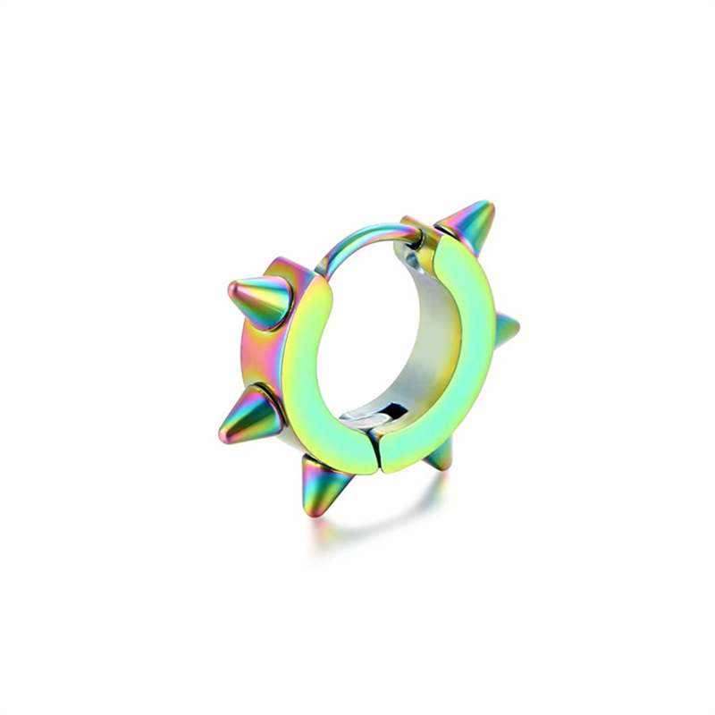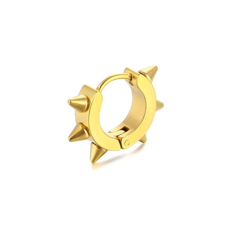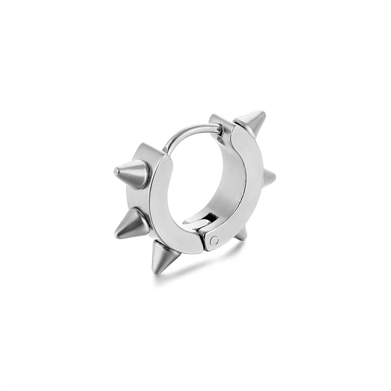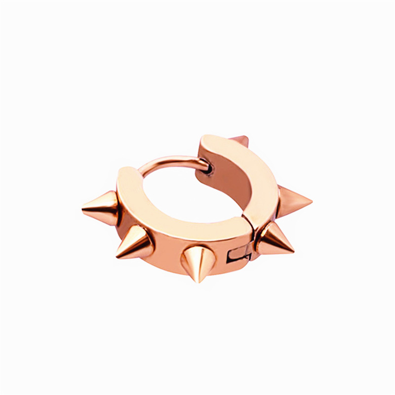 欧美创意男士耳环不锈钢个性朋克男士尖刺耳环钛钢单只六尖锥耳扣