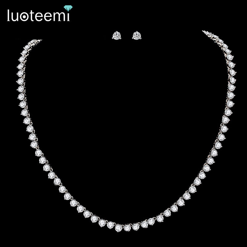 Jinse Bride Necklace Set Copper Set Zircon Set Chain Necklace Wedding Banquet Joker High-end Jewelry Wholesale