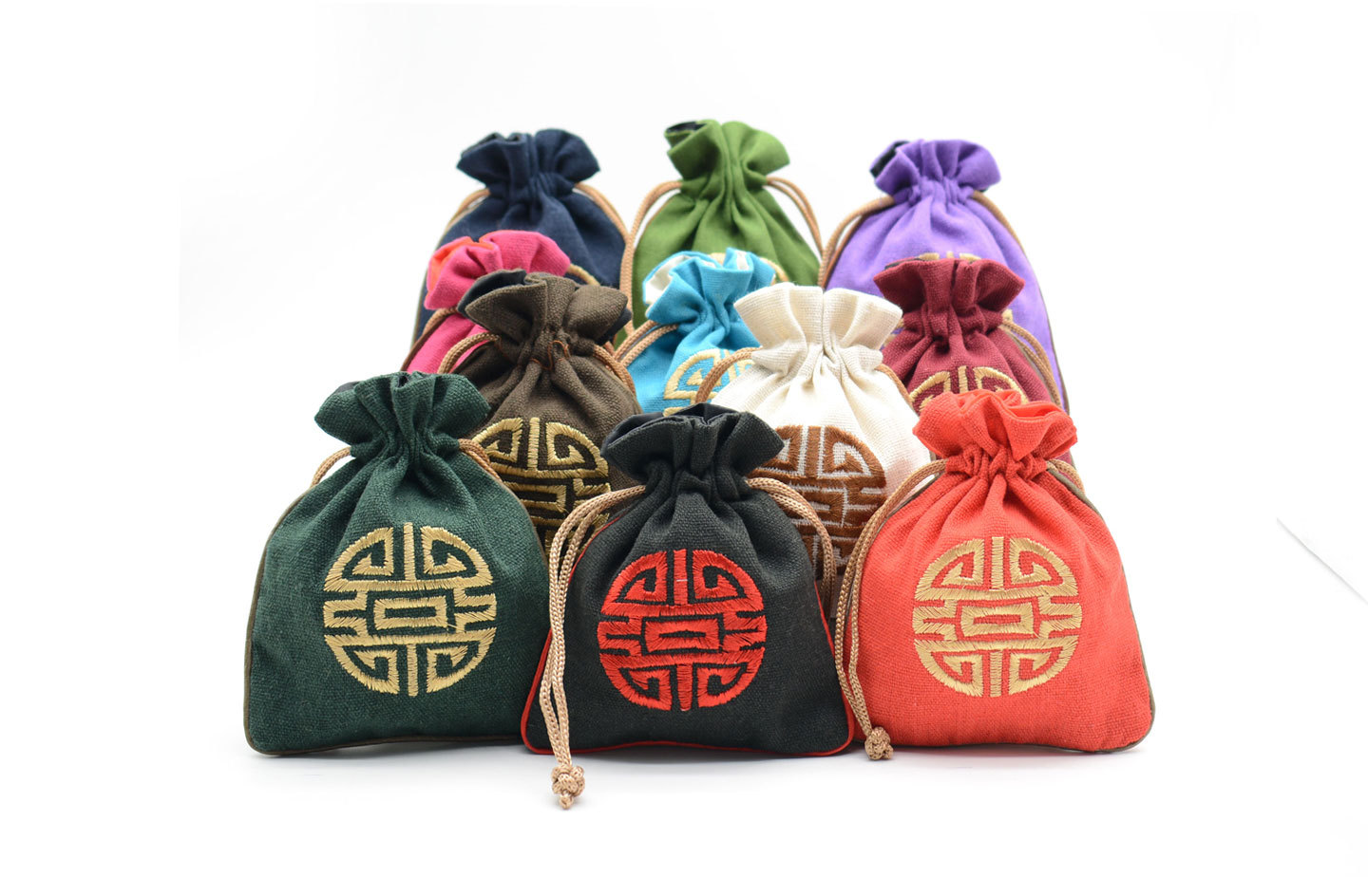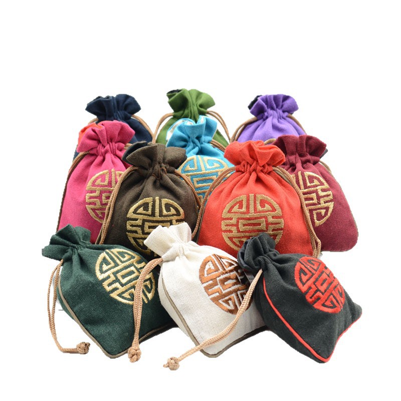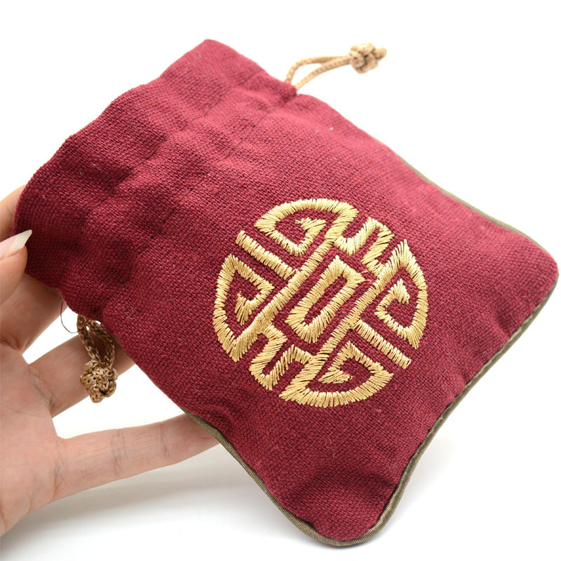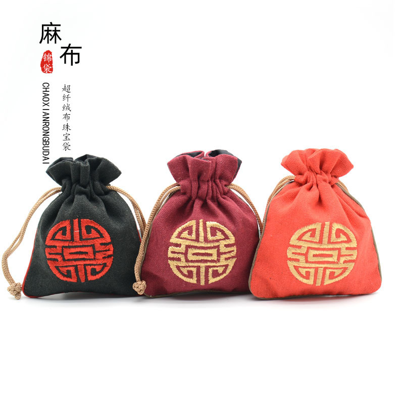 Sackcloth Buddha bead bag plate play thick text play drawstring storage bag gift bag packaging bag jewelry bag spot wholesale