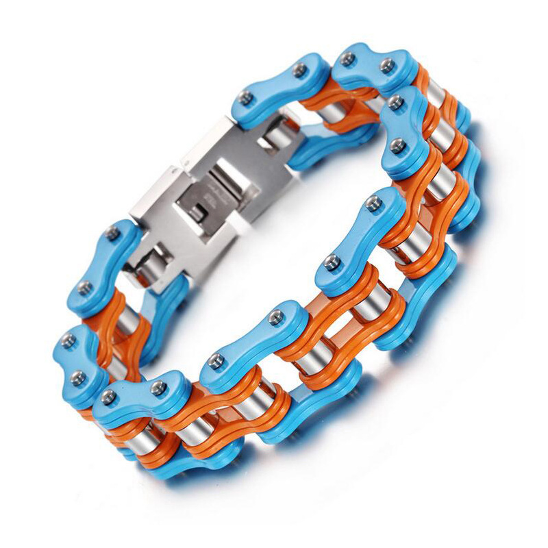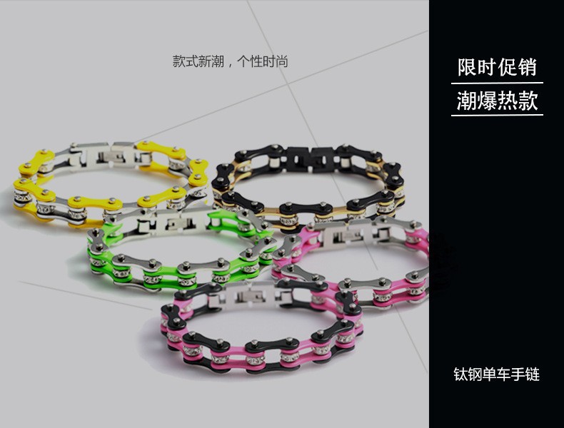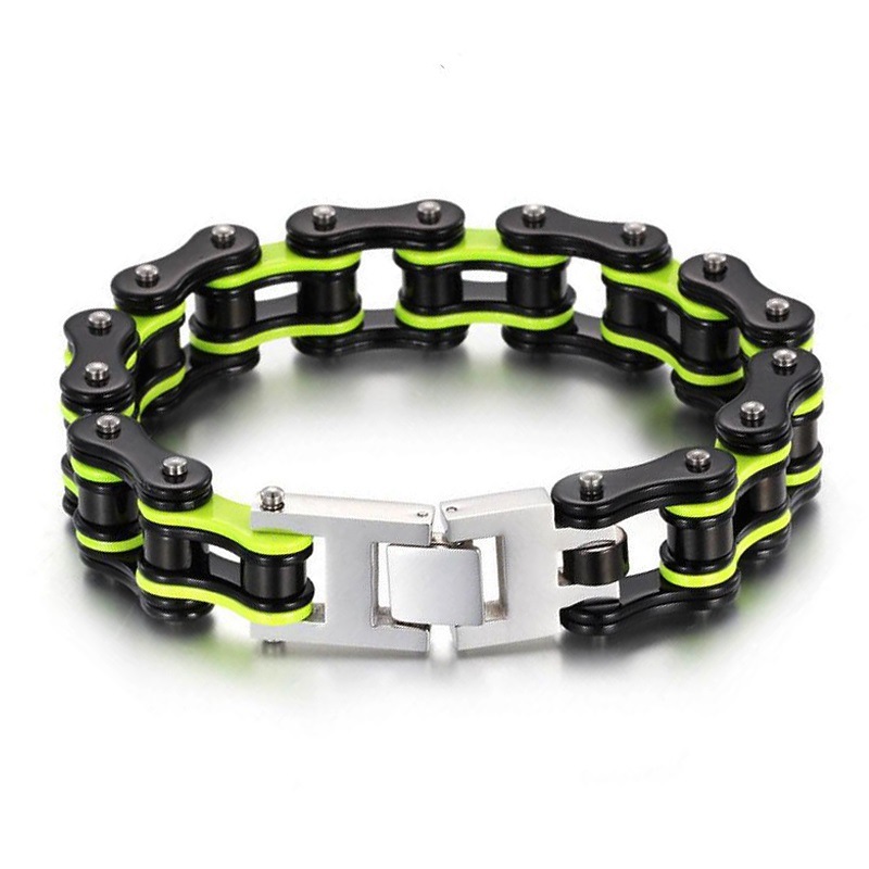 European and American Trendyy Jewelry Stainless Steel Bicycle Bracelet Red and Black Thickened Personalized Men's Motorcycle Accessories Titanium Steel Bracelet