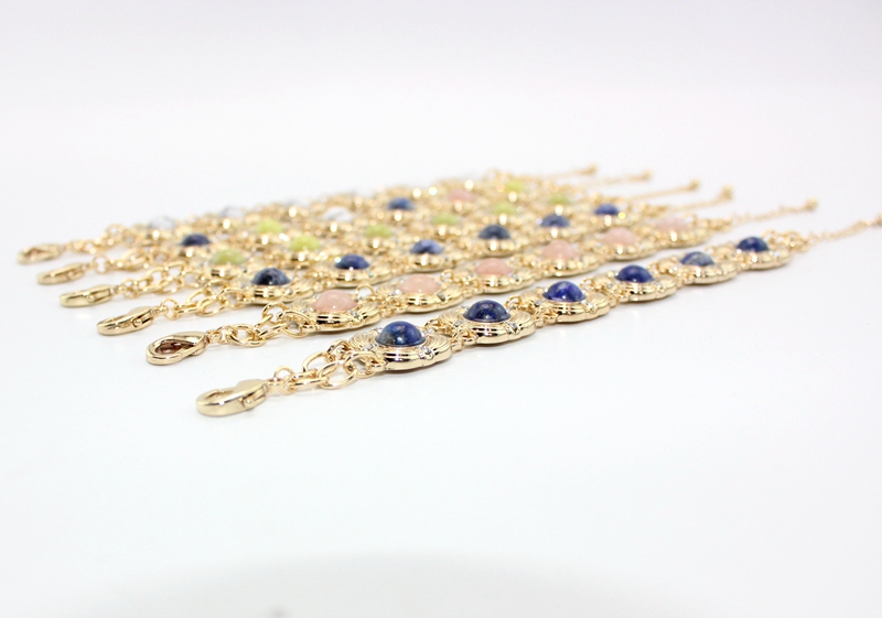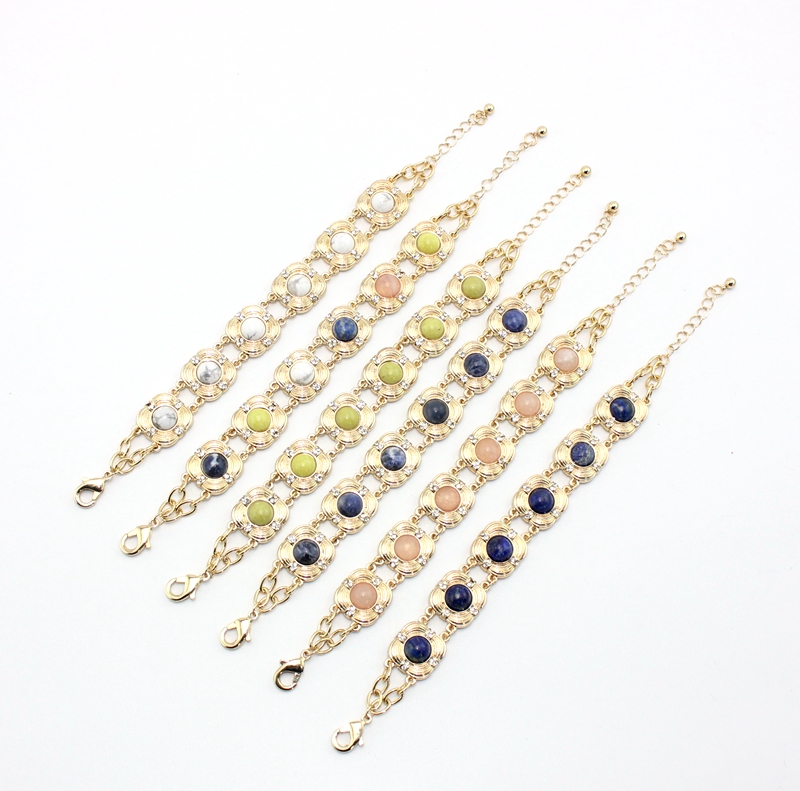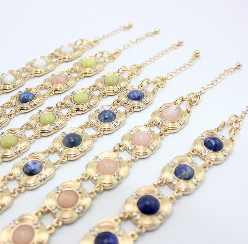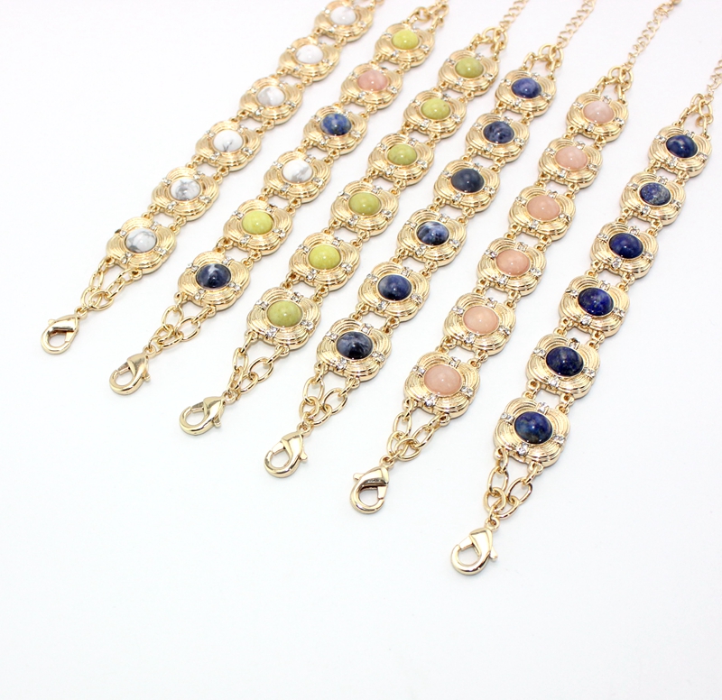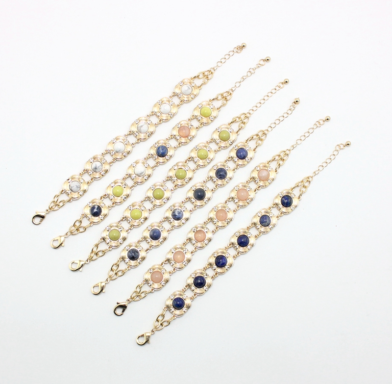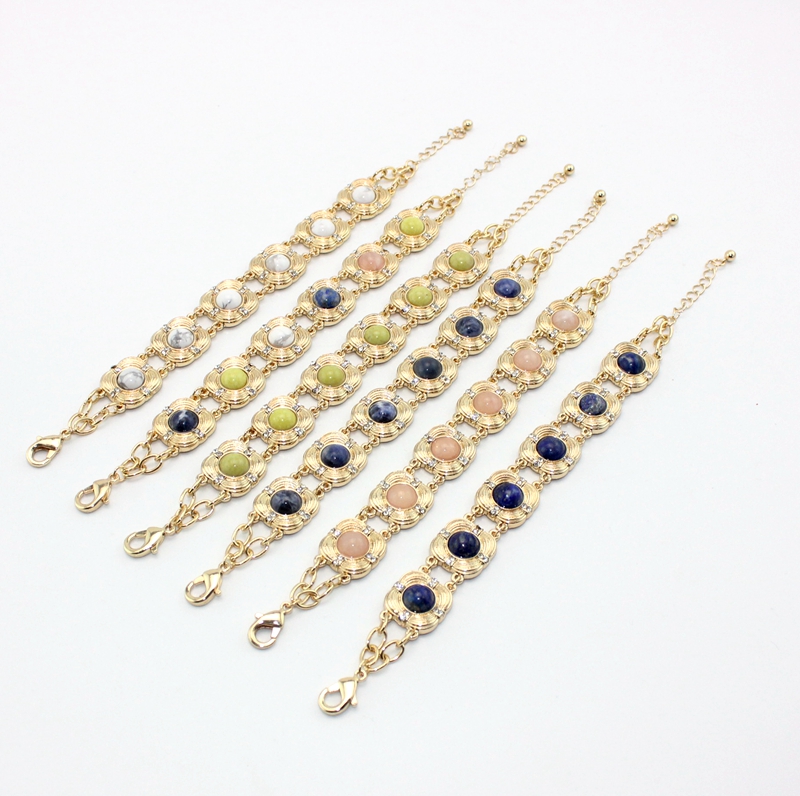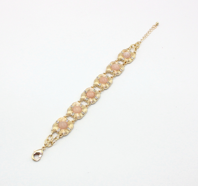 欧美风饰品 天然石镶嵌方形手链 质感粉晶石手链