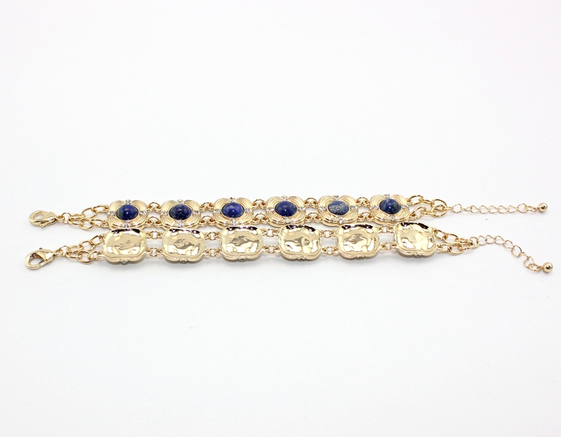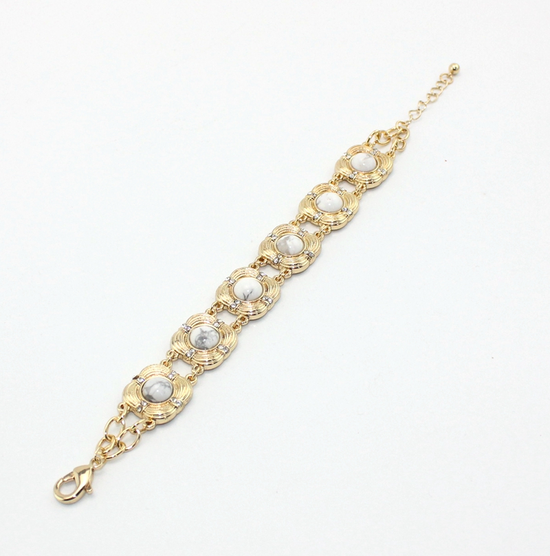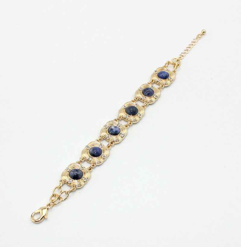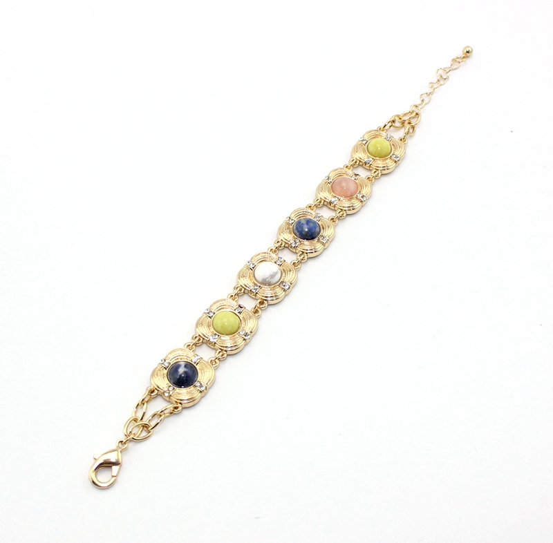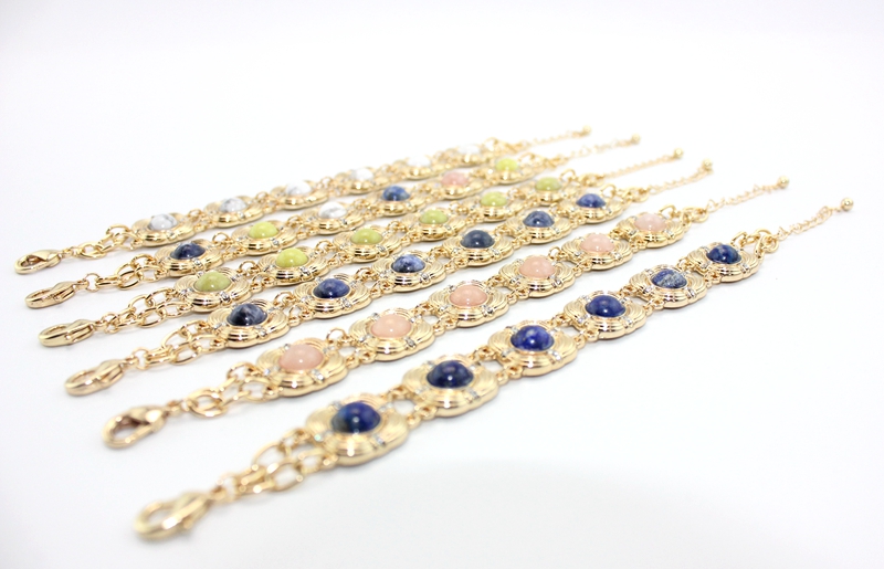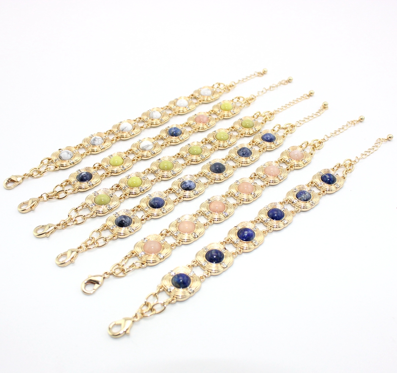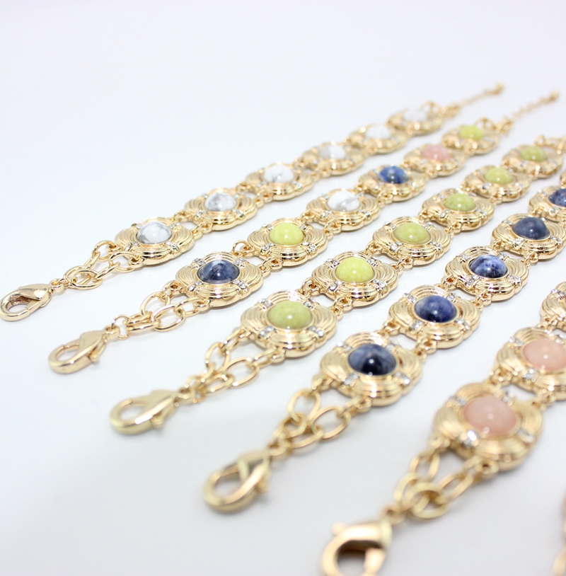 欧美风饰品 天然石镶嵌方形手链 质感粉晶石手链
