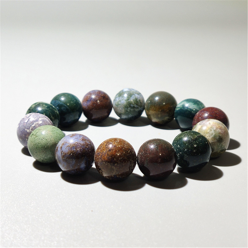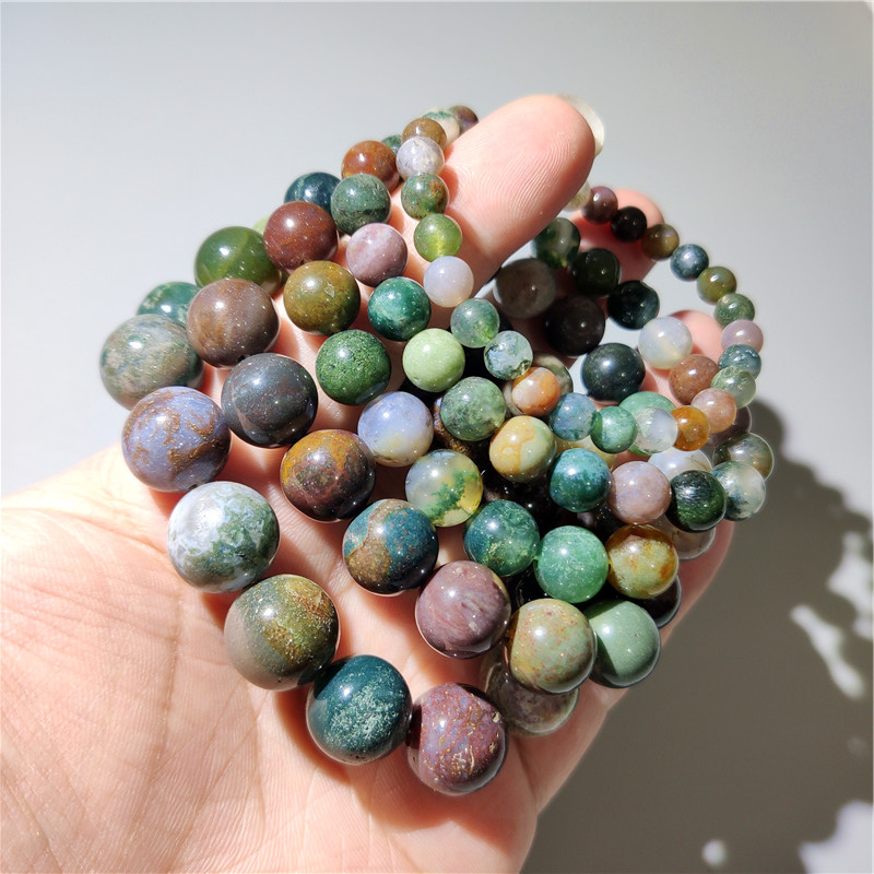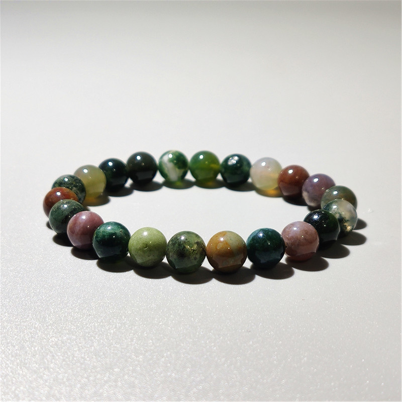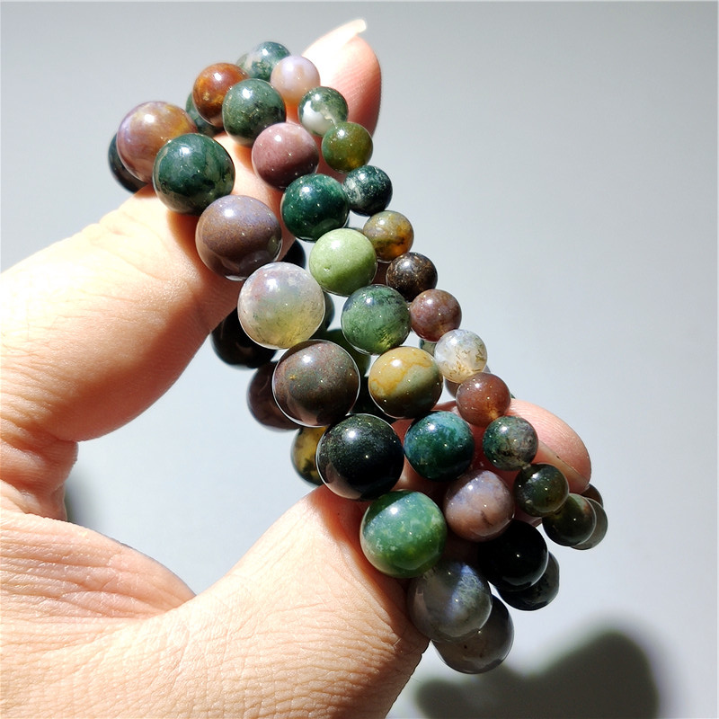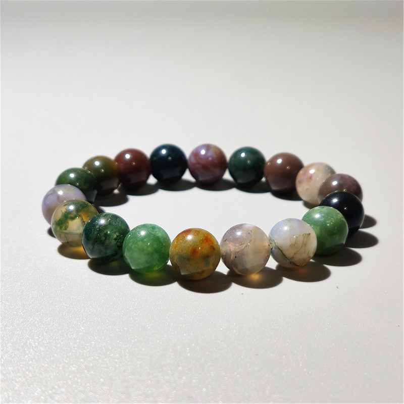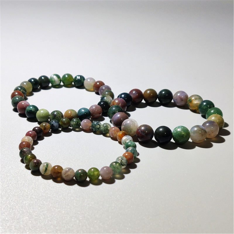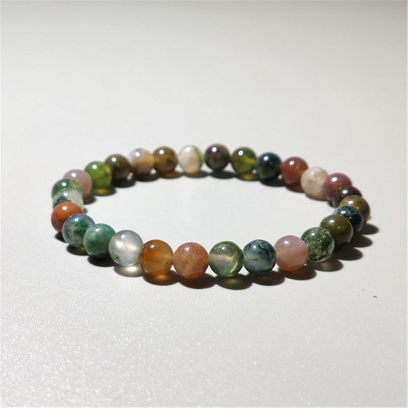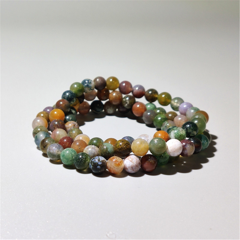 天然水草玛瑙七彩玉石手链8-18mm单圈印度玛瑙女款手串