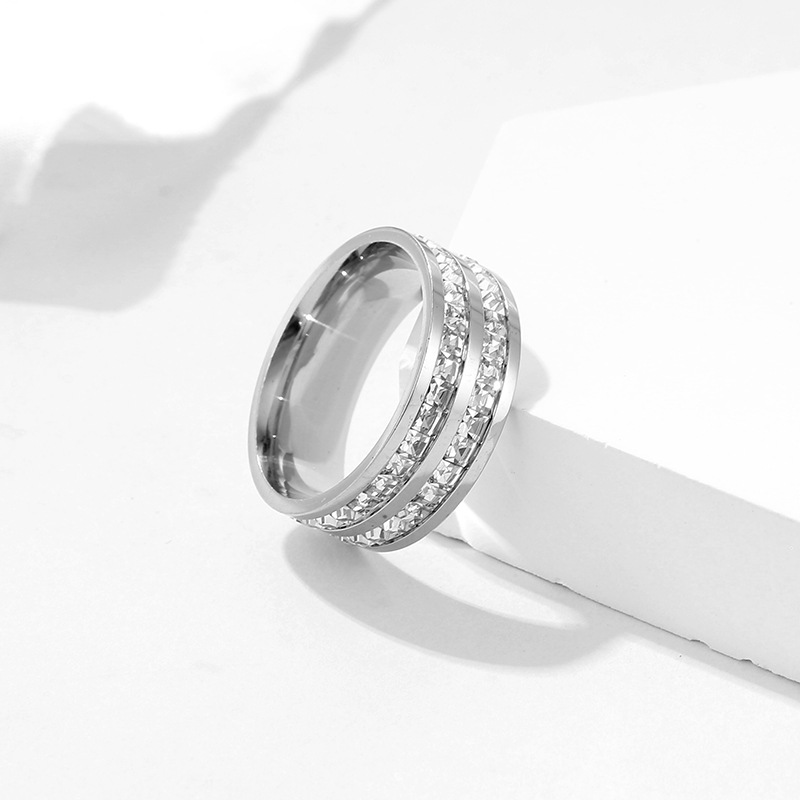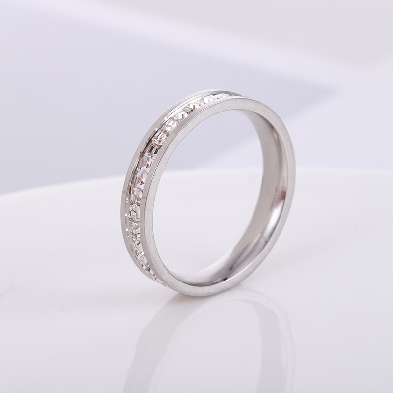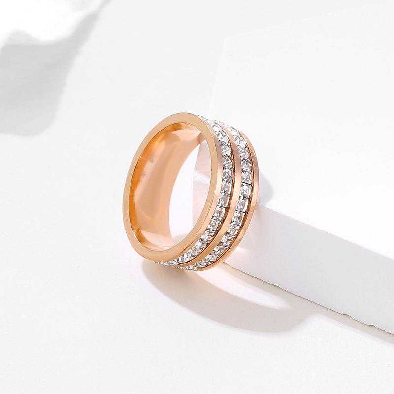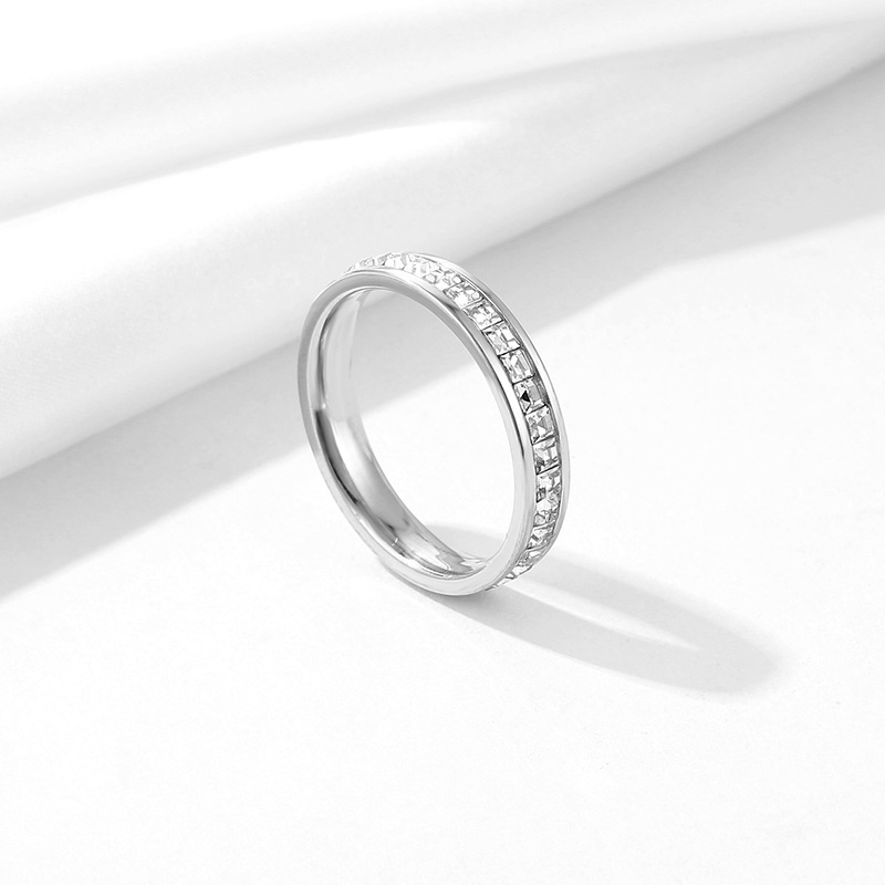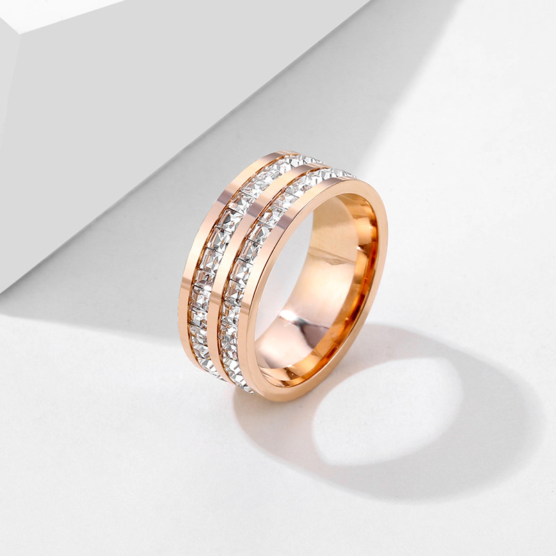 Stainless Steel Single and Double Row Small Square Diamond Full Diamond Ring Japanese and Korean Stars Rose Gold Girl's Tail Ring Live