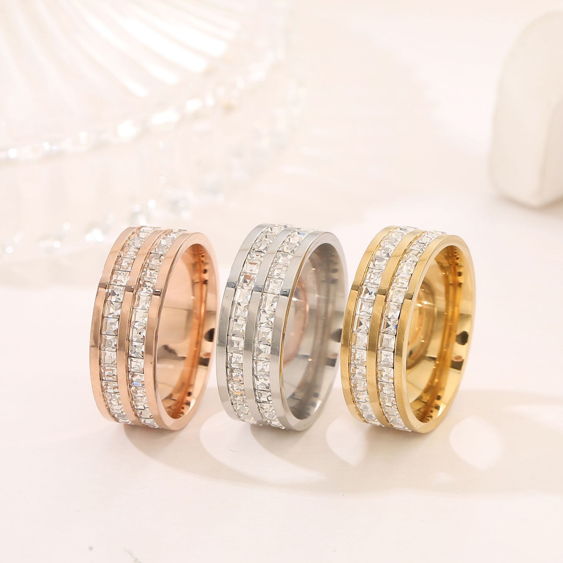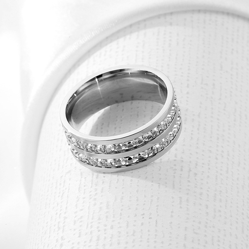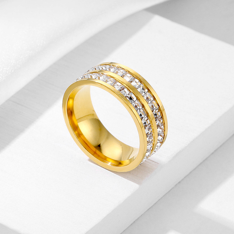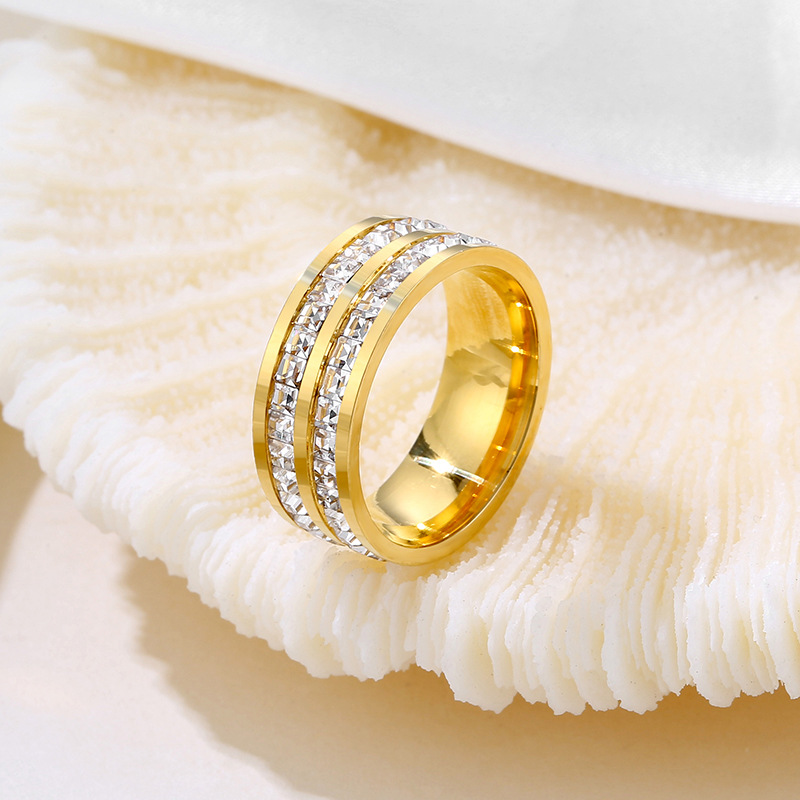 Stainless Steel Single and Double Row Small Square Diamond Full Diamond Ring Japanese and Korean Stars Rose Gold Girl's Tail Ring Live