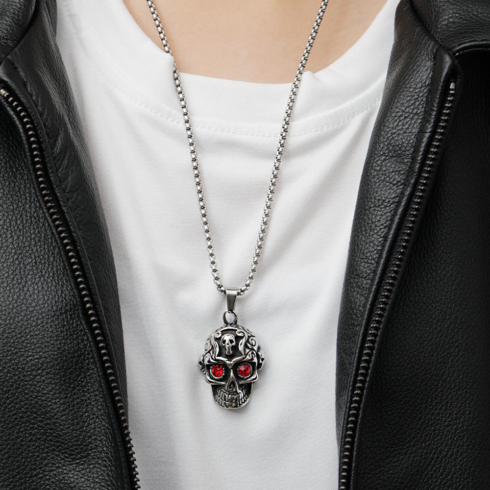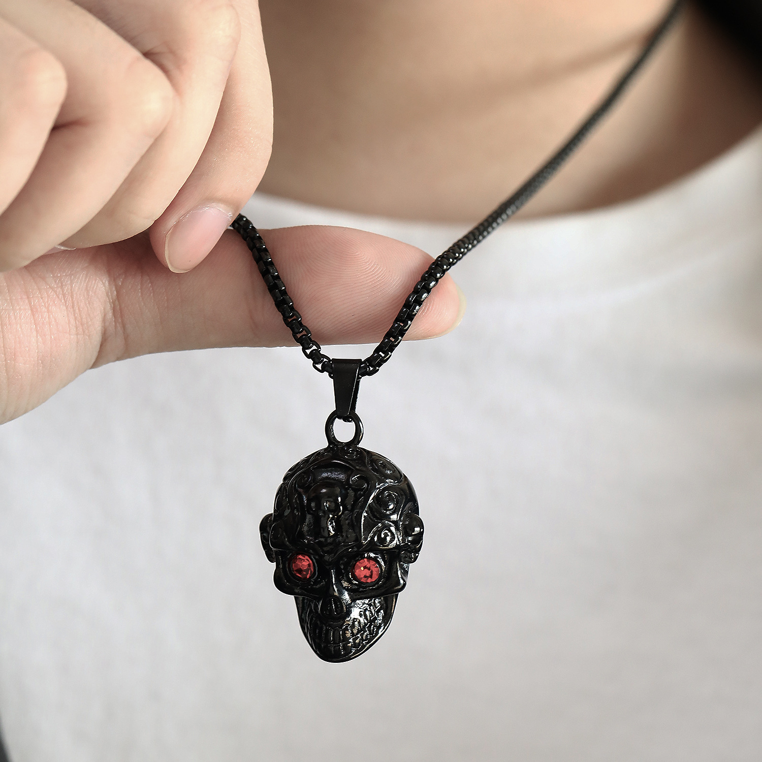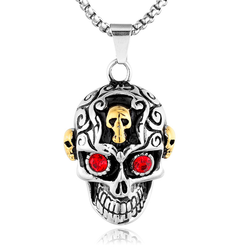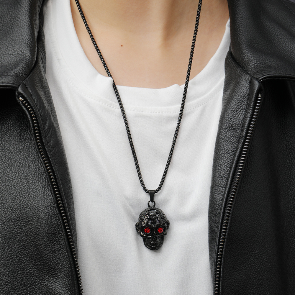 Manufacturer Wholesale Titanium Steel Ghost Headband Diamond Pendant Men's Domineering Punk Style Stainless Steel Pendant Metallic Feel