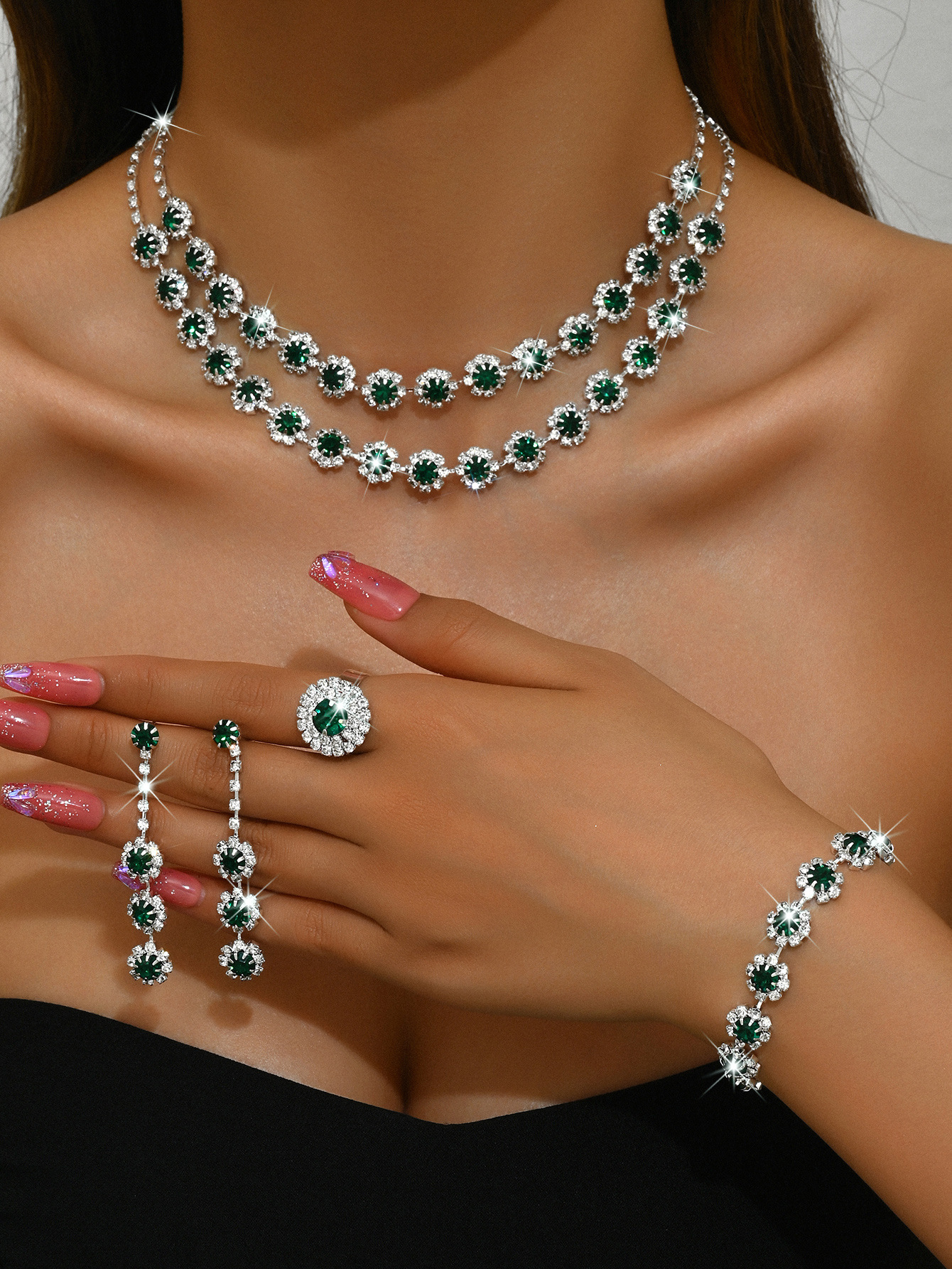 Color: 484798918Hole green necklace + earrings + bracelet + ring
