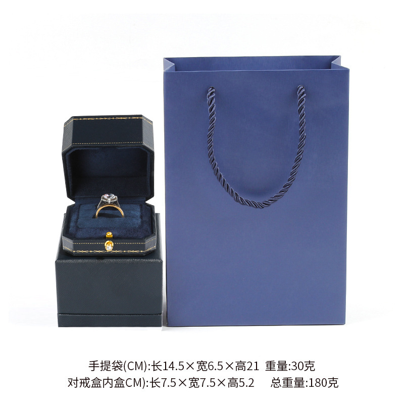 Specifications and models: Blue single ring box + blue unlabeled handbag; european jewelry box [can be customized]