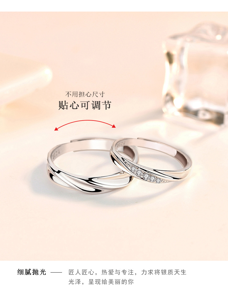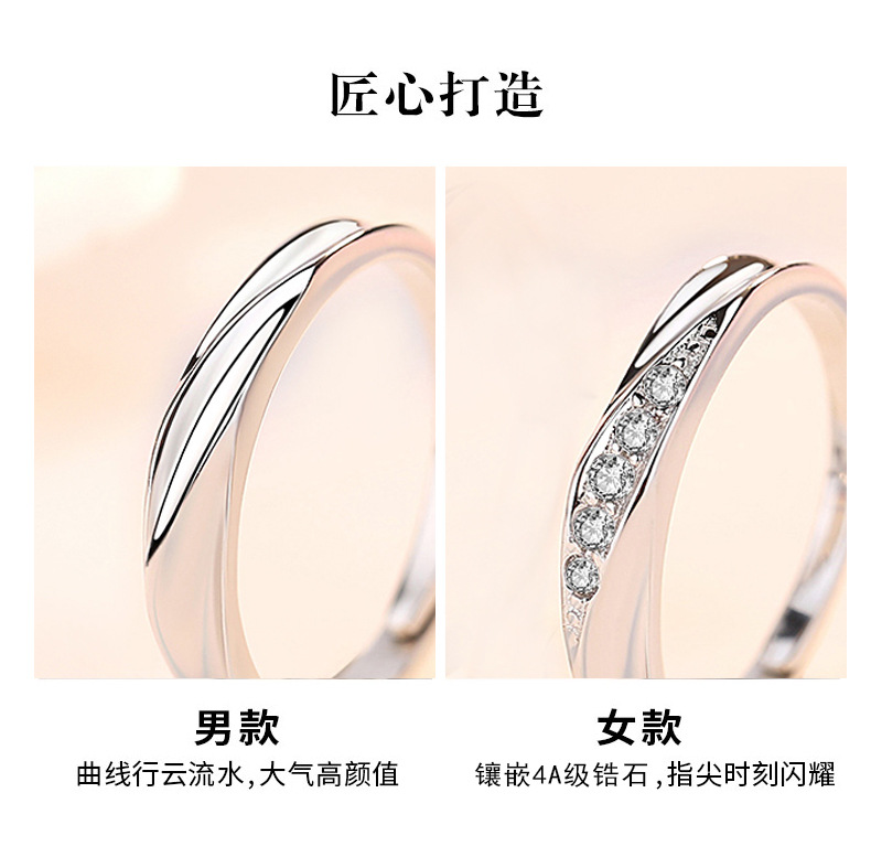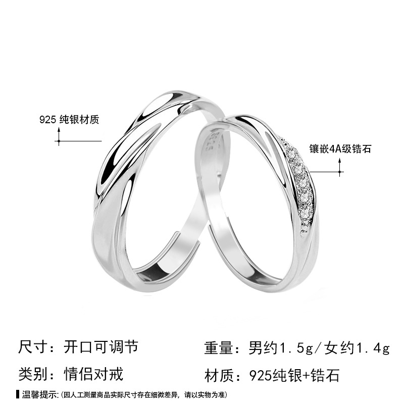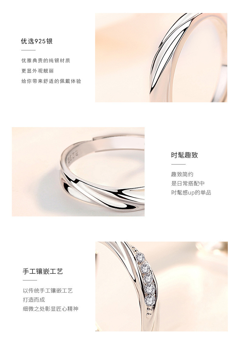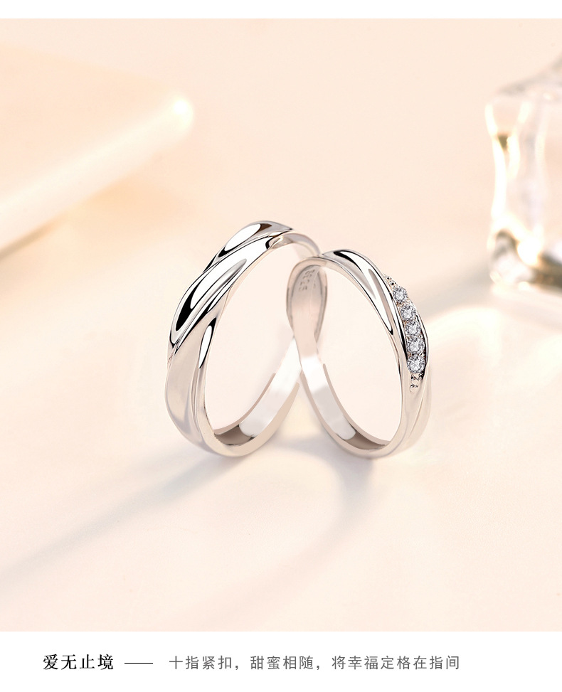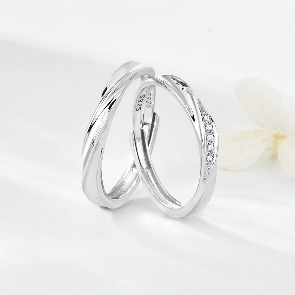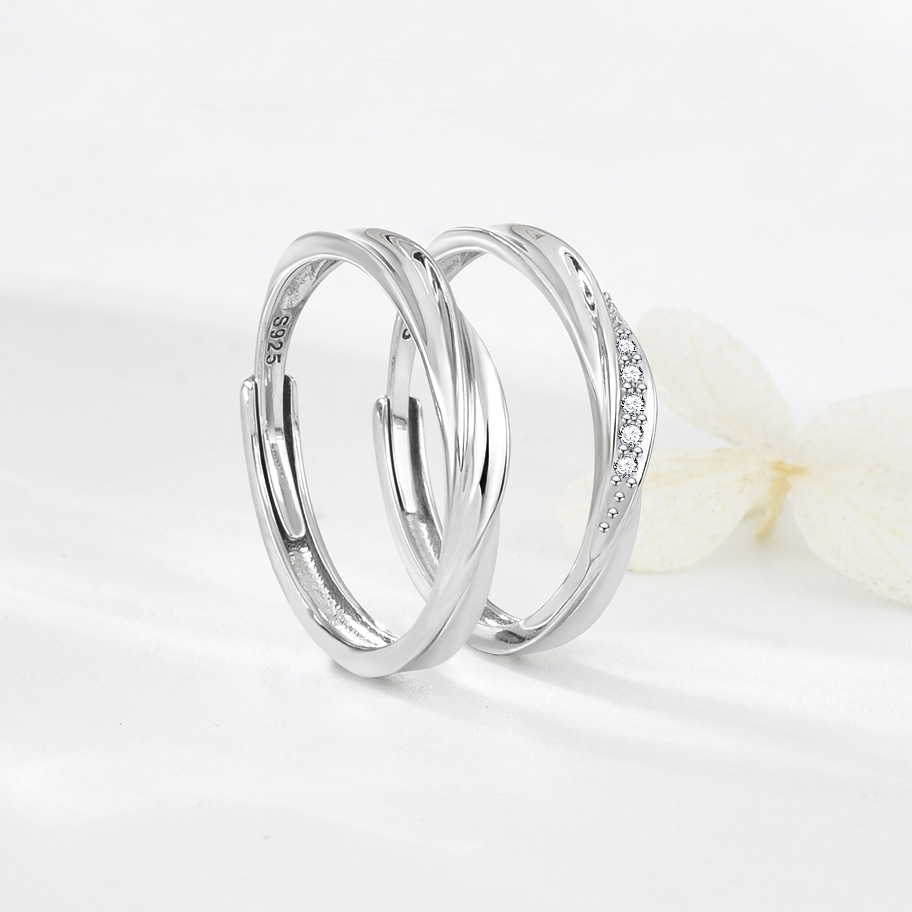 S925 Sterling Silver Diamond-Encrusted Mobius Couple Rings for Men and Women, Simple and High-End Wedding Rings, Silver Jewelry