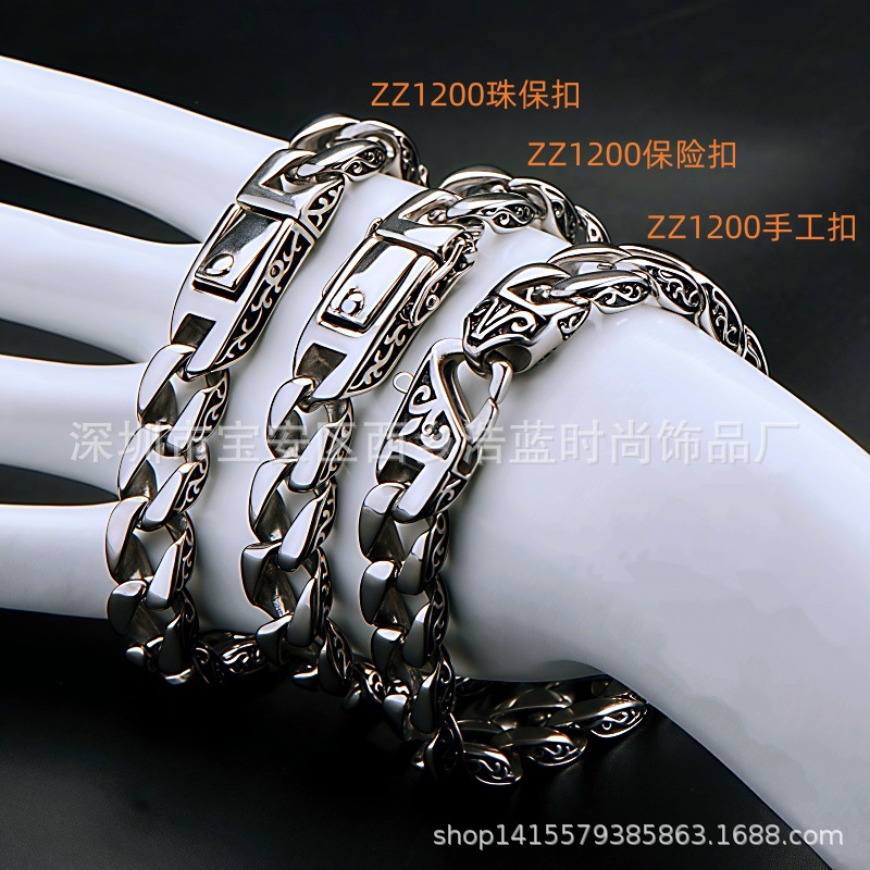 个性钛钢复古潮男手链朋克嘻哈情侣手环品质手镯天猫ebay货源厂家