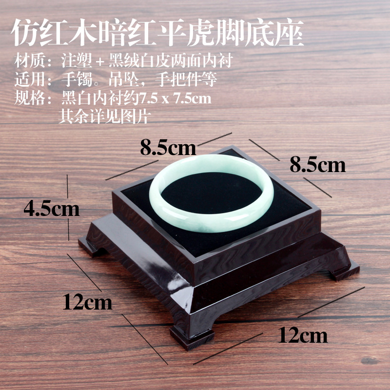 编织调节镯子架:底部咖啡面部分规格为5 * 9 * 2cm。上部切片为宽窄可调。但不适合放很宽或者很细的镯子。适用于普通大小的手镯展示。