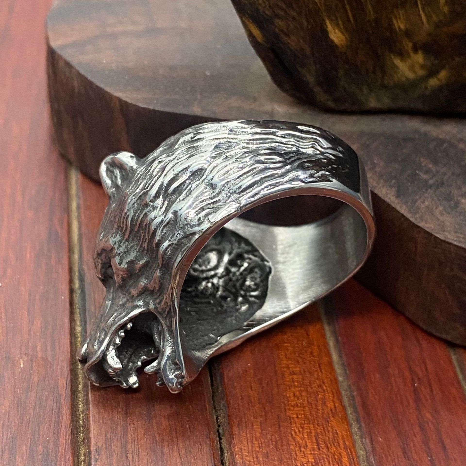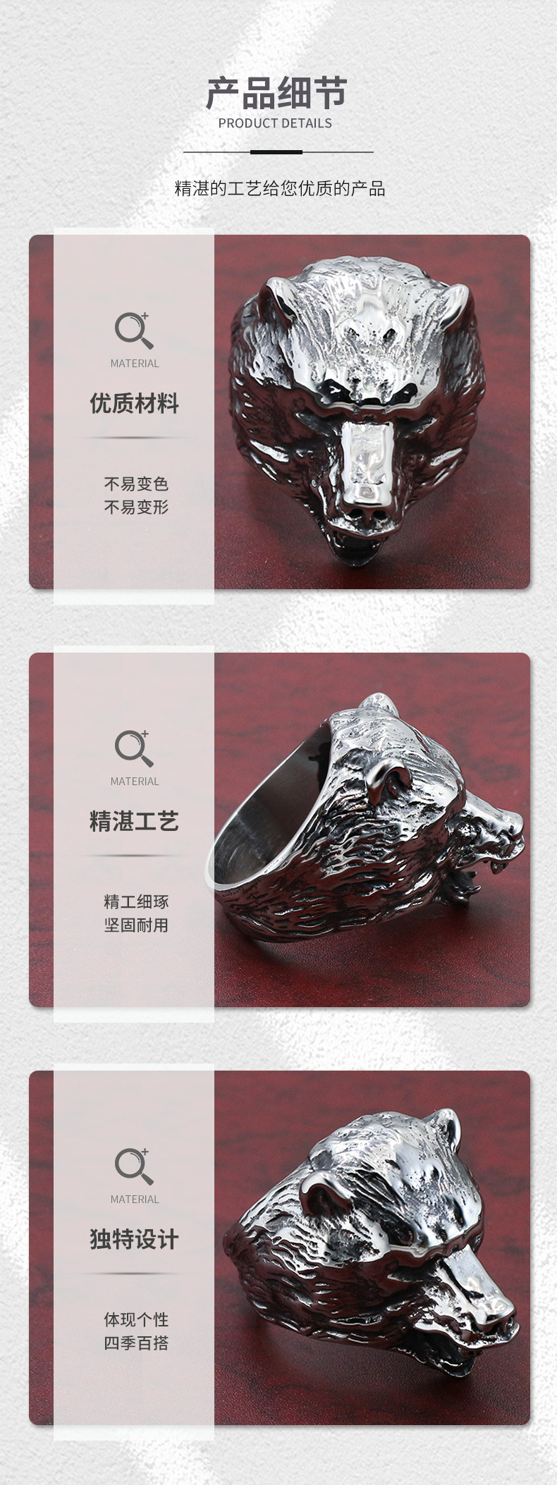 Europe and the United States cross-border wolf head men's and women's lovers animal stainless steel ring hand first accessories a generation of hair