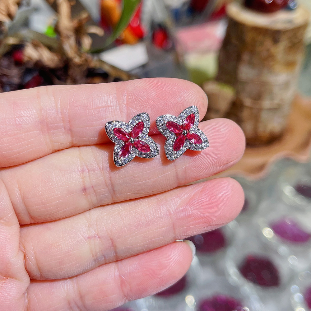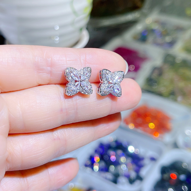 Factory direct four-leaf clover copper zircon inlaid earrings necklace set Europe and the United States cross-border supply of real gold-plated jewelry