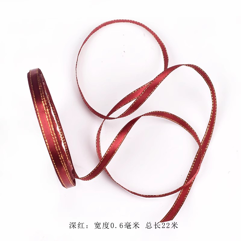 Color: Gold edge crimson ribbon (22m) 6mm