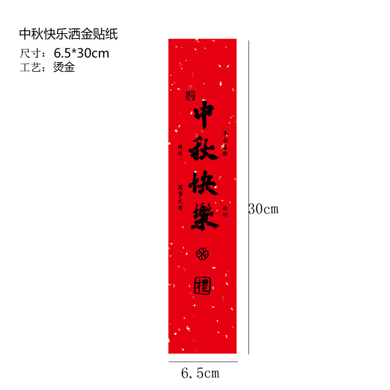 Specifications and models: 10 sheets - long happy mid-autumn festival gold sprinkled paper stickers; see picture (logo can be printed)