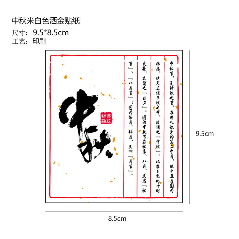 Specifications and models: 20 sheets - large mid-autumn festival stickers; see picture (logo can be printed)