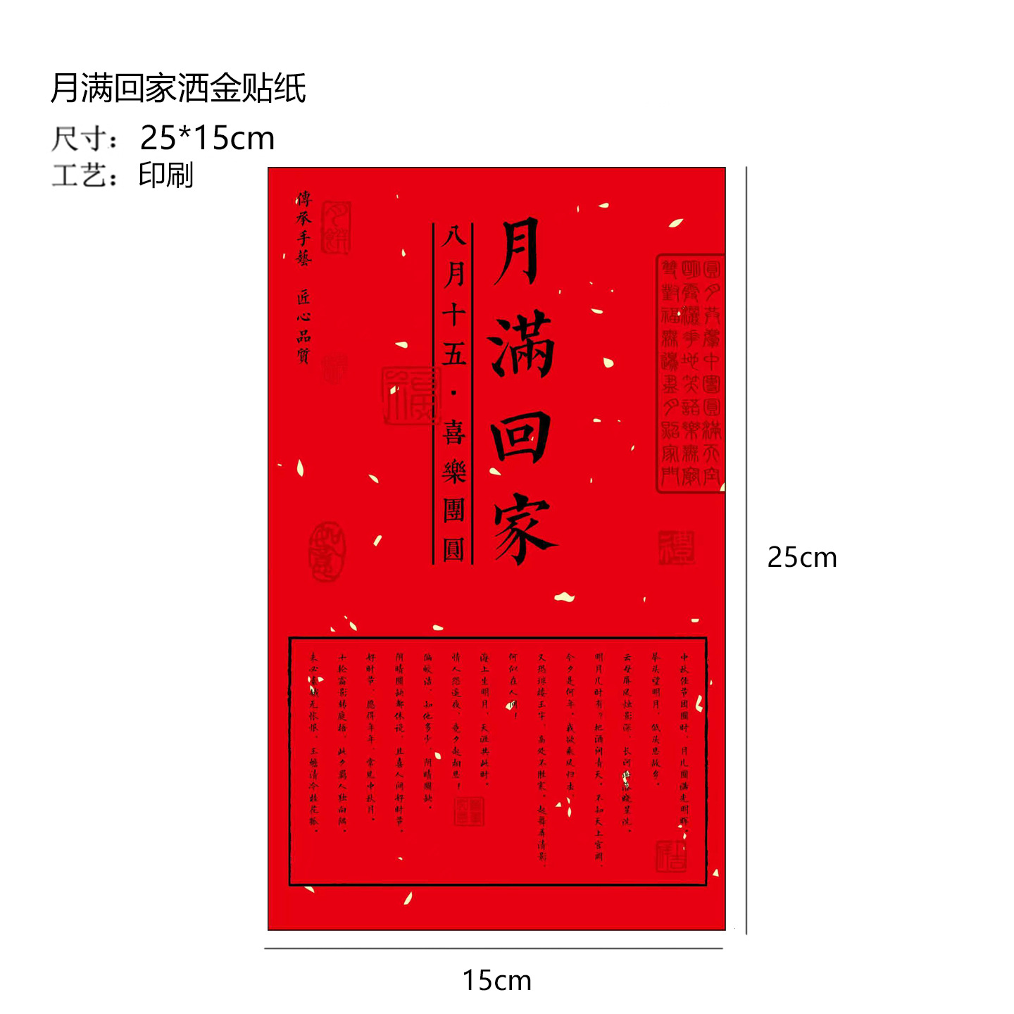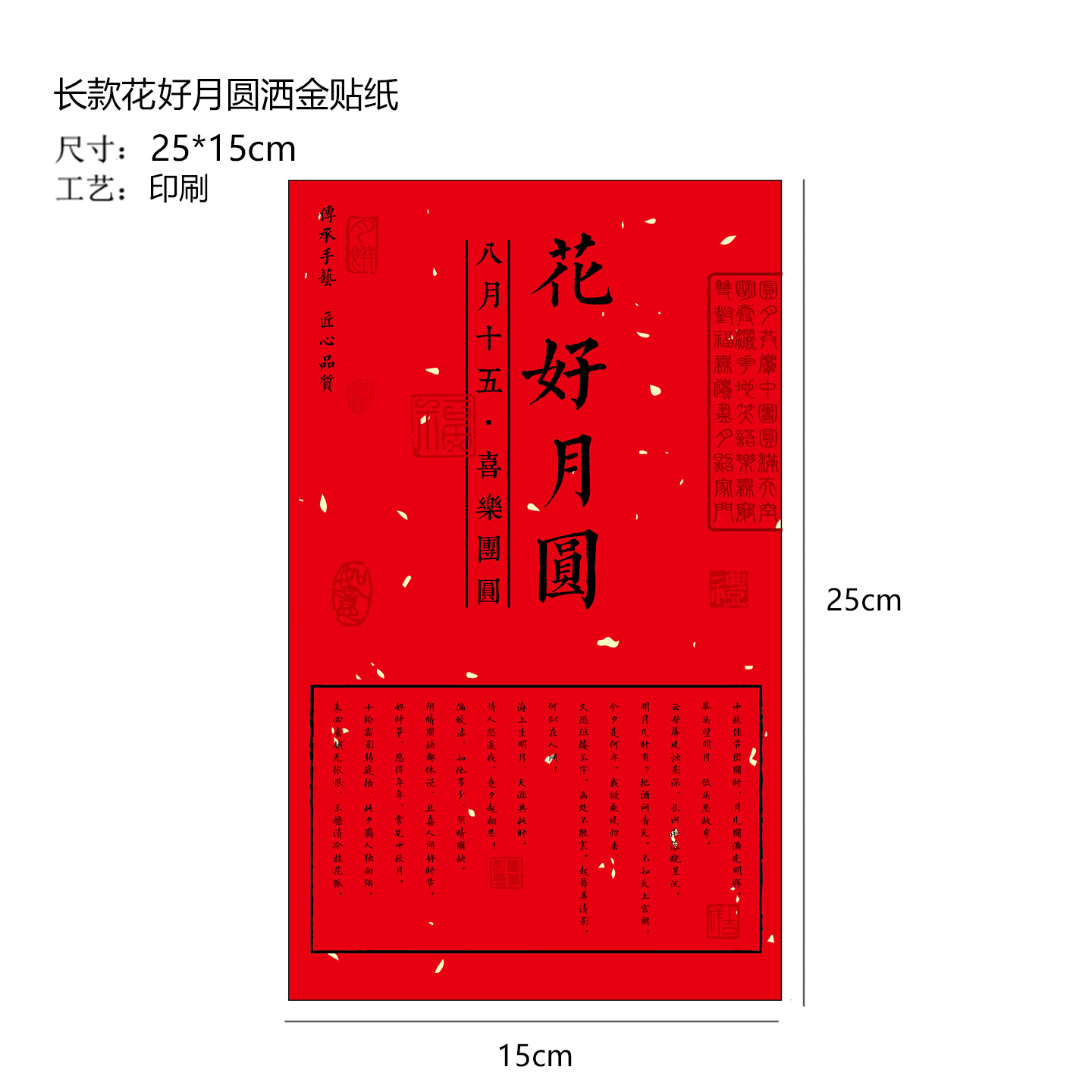 Color: 10 sheets-long happy mid-autumn festival gold sprinkled paper stickers