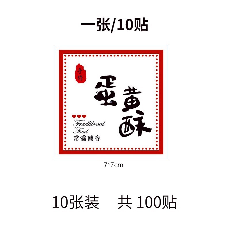 Specifications and models: 10 sheets - egg yolk pastry stickers (100 stickers total); see image (logo printable)