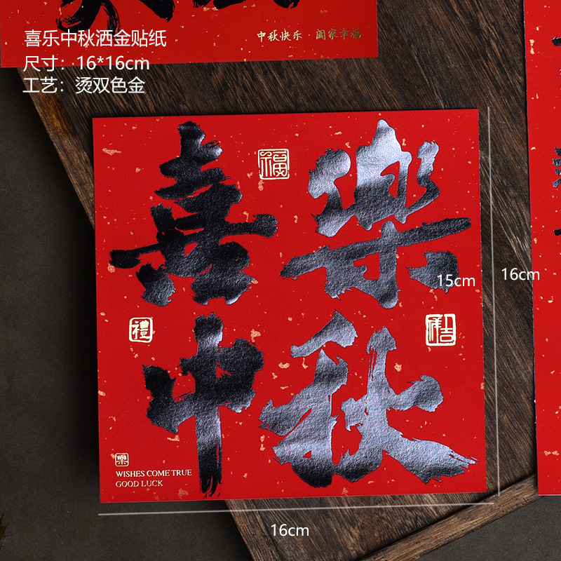 Color: 10 sheets--square happy mid-autumn festival gold stickers