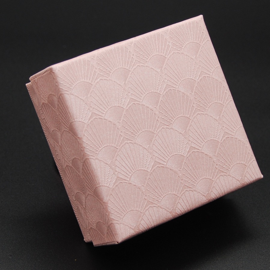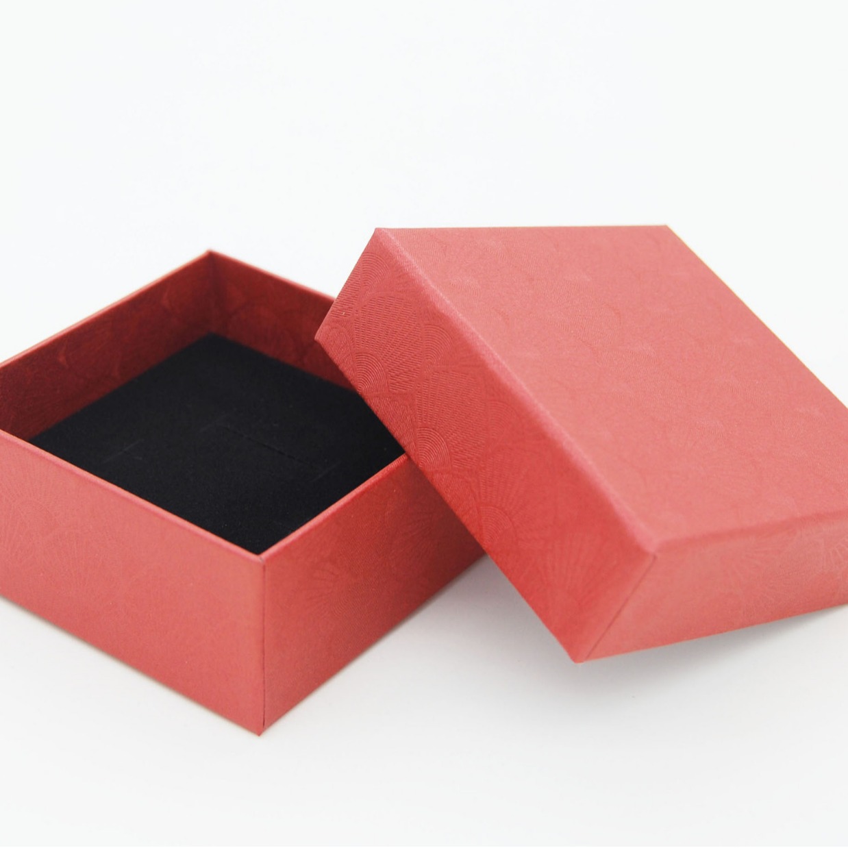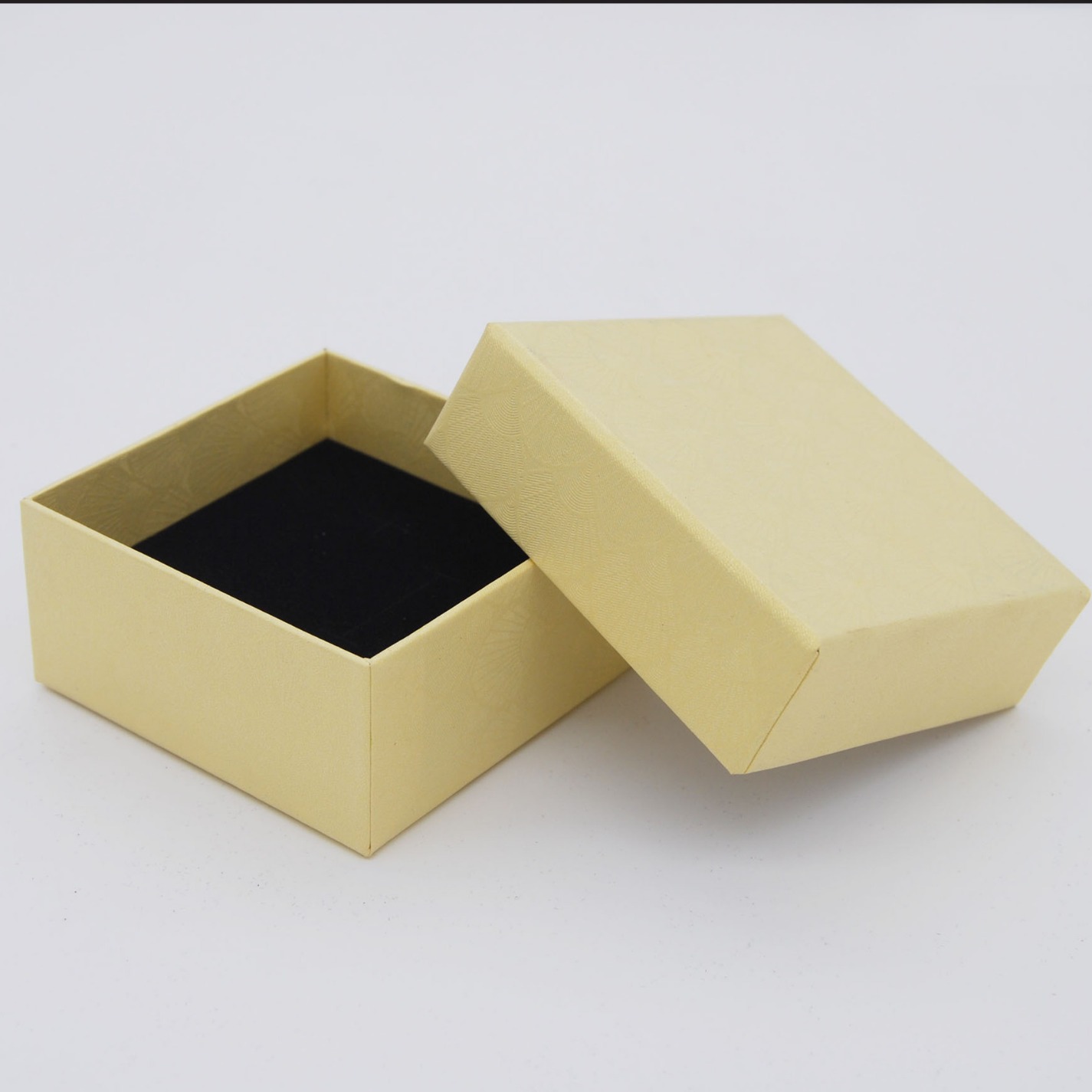 这款盒子属于一款:戒指/吊坠/耳钉套装型首饰盒,尺寸为:7.5*7.5*3.5cm(外径),盒子材料是用500g纸板+特种充皮纸/珠光纸生产而成,盒内是由1.5cm中密度的黑色海绵贴黑色绒布,海绵上开有可放戒指/吊坠/耳钉的孔槽,方便各人所需要而选择.