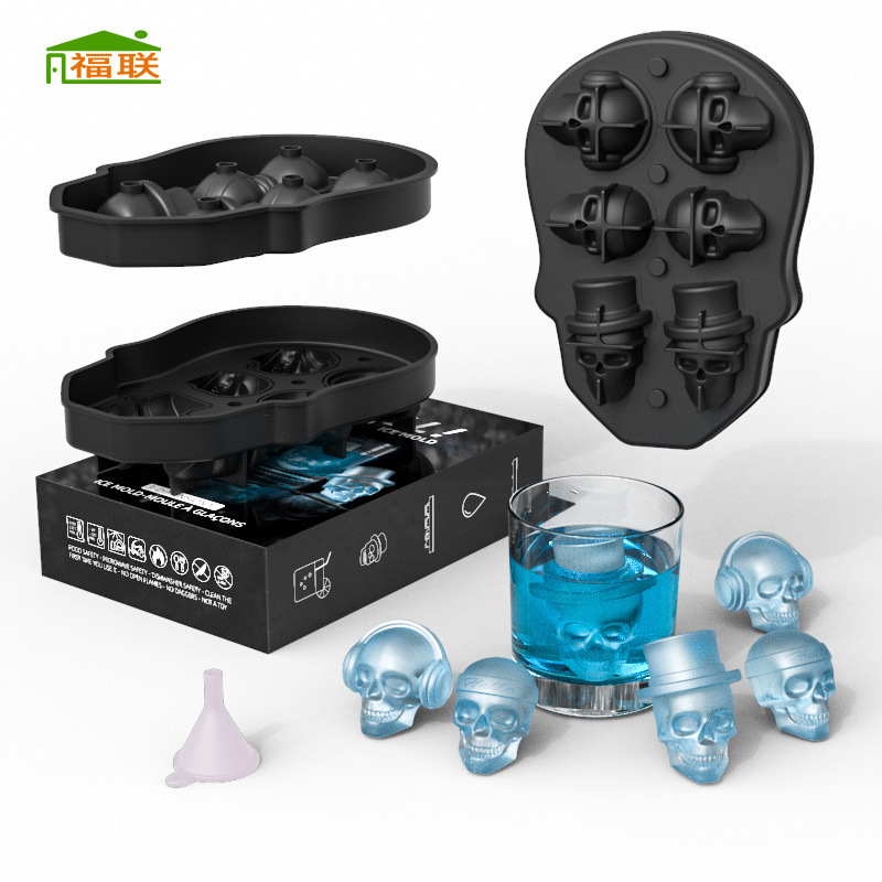 跨境热销冰块制冰盒 6连冰格骷髅头冰格 威士忌冰球速冻冰块冰模具