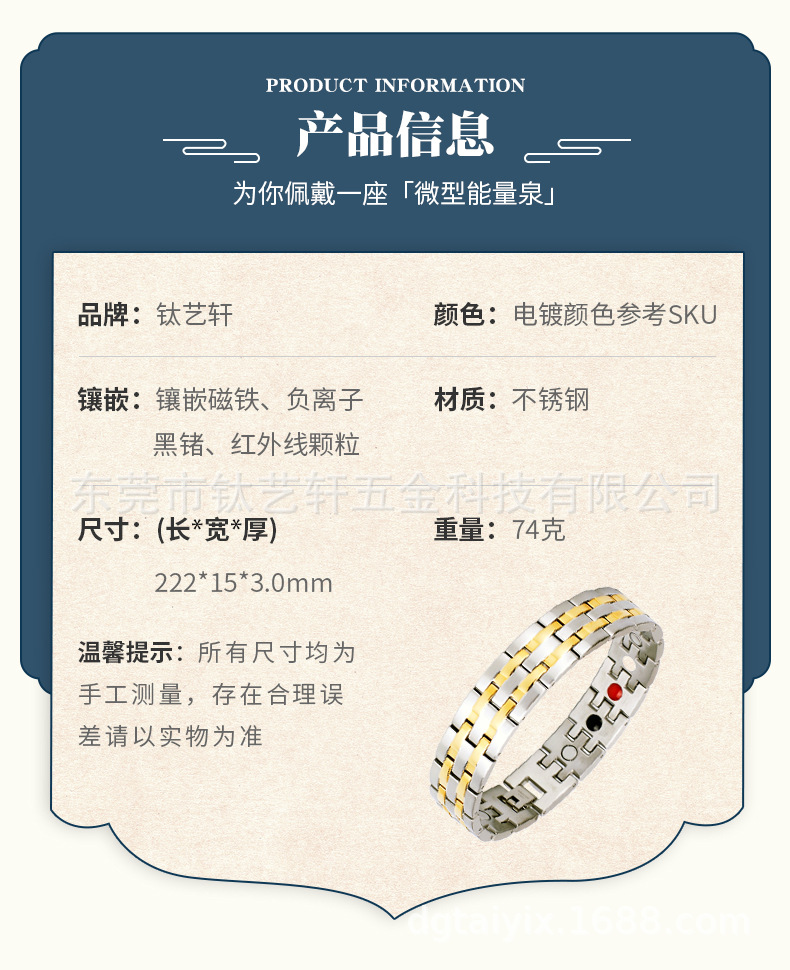 Stainless steel bracelet titanium steel jewelry magnet men's bracelet European and American fashion jewelry TY446 in stock wholesale