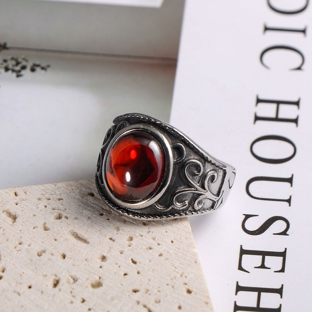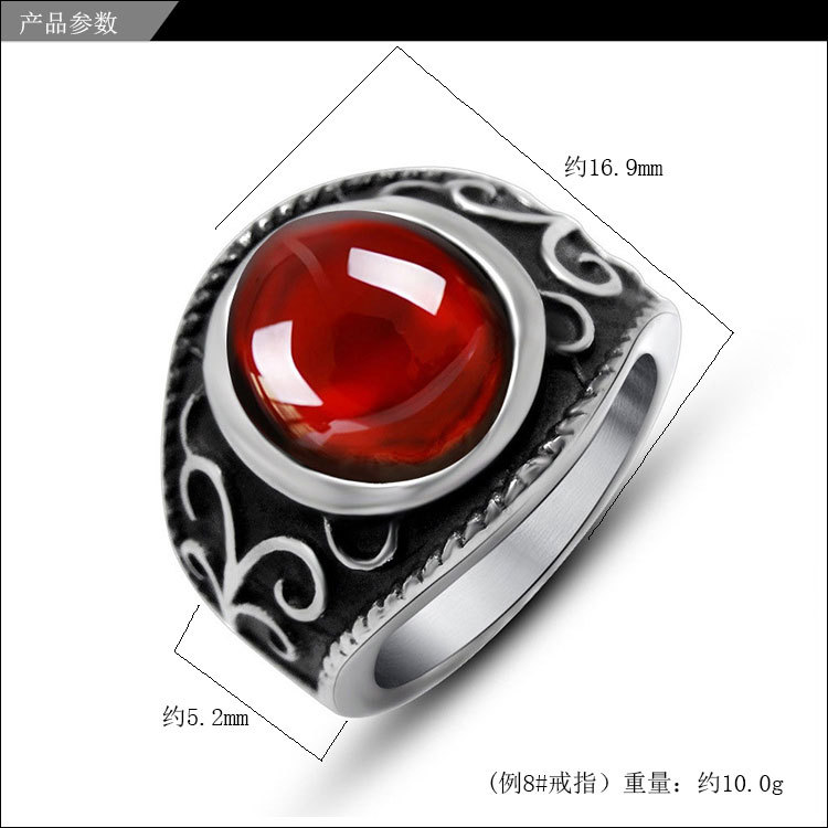 Source factory wholesale magic pomegranate ruby ring temperament men hip hop titanium steel ring SA704