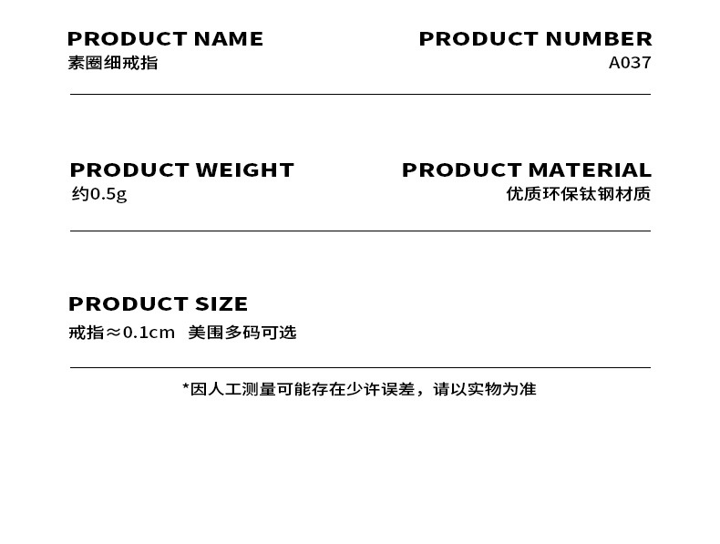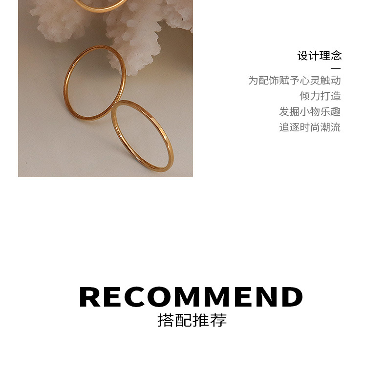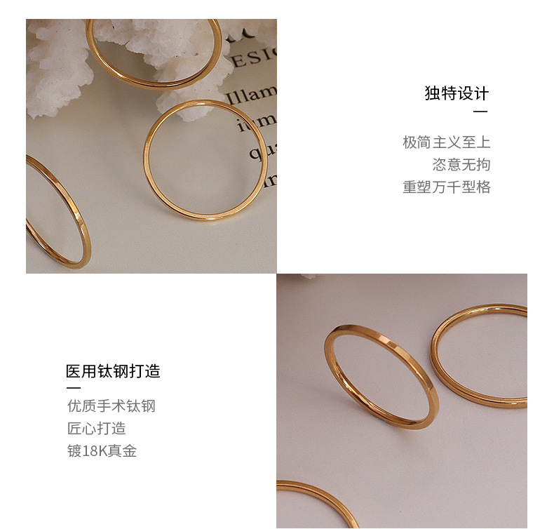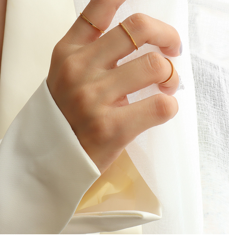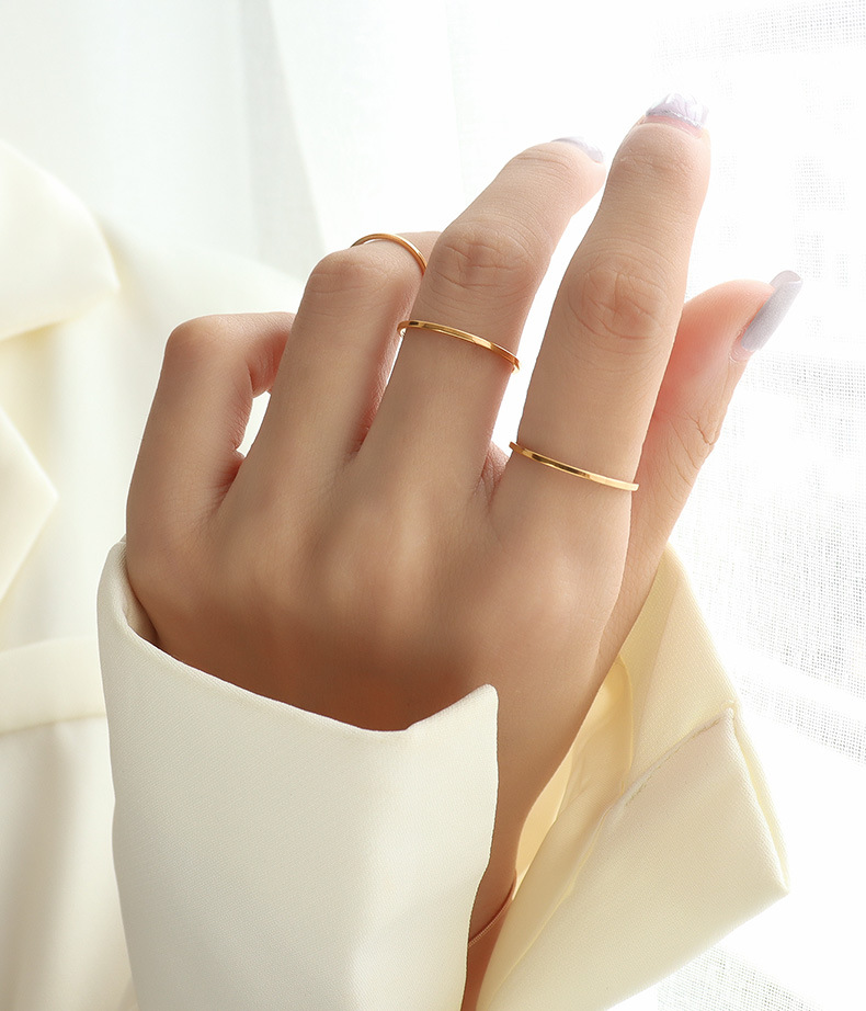 Ins Jewelry Ring Elegant Simple Plain Ring Thin Tail Ring Glossy Ring Index Finger Ring Titanium Steel 18K Gold A037