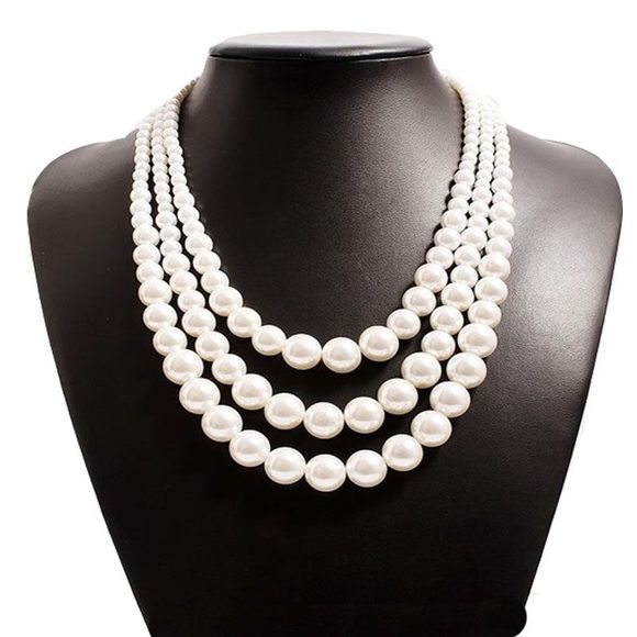 新款三层珍珠项链 服饰搭配饰品配饰 多层珍珠项链长款褀袍配饰