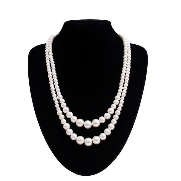 珍珠项链双层玻璃珠饰品女百搭 串珠时尚旗袍配饰 韩版U形烤漆珠