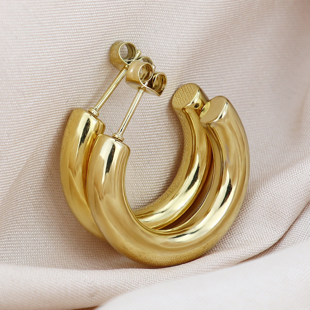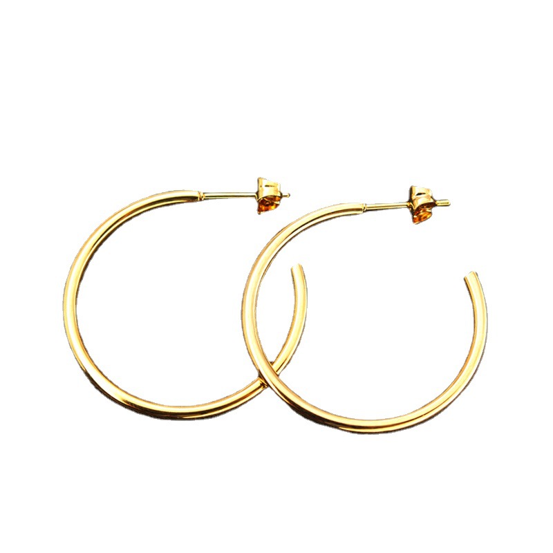 Korean fashion titanium steel exaggerated C- shaped earrings stainless steel geometric round earrings ear rings ear jewelry factory direct sales