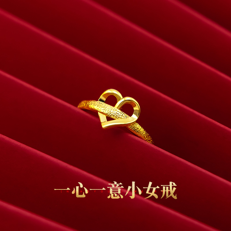 Vietnam Sand Gold Plated Double Heart Women's Ring Spelling More Walking Amount Ring Japanese and Korean Fashion Opening Women's Love Ring