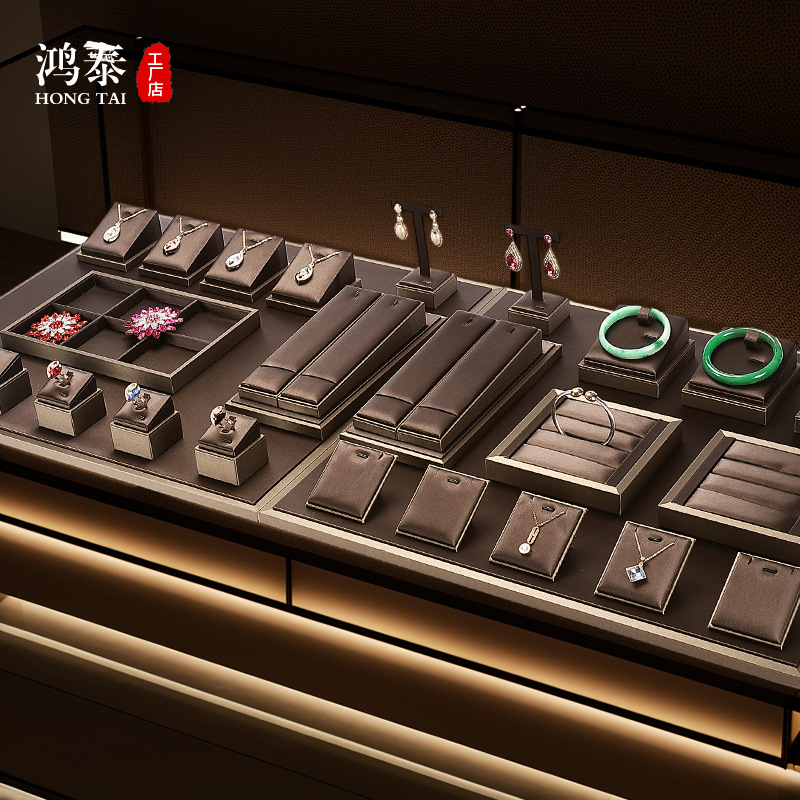 Hongtai Model Jewelry Rack Brushed PU Leather Neck Seat Jewelry Display Props Necklace Counter Display