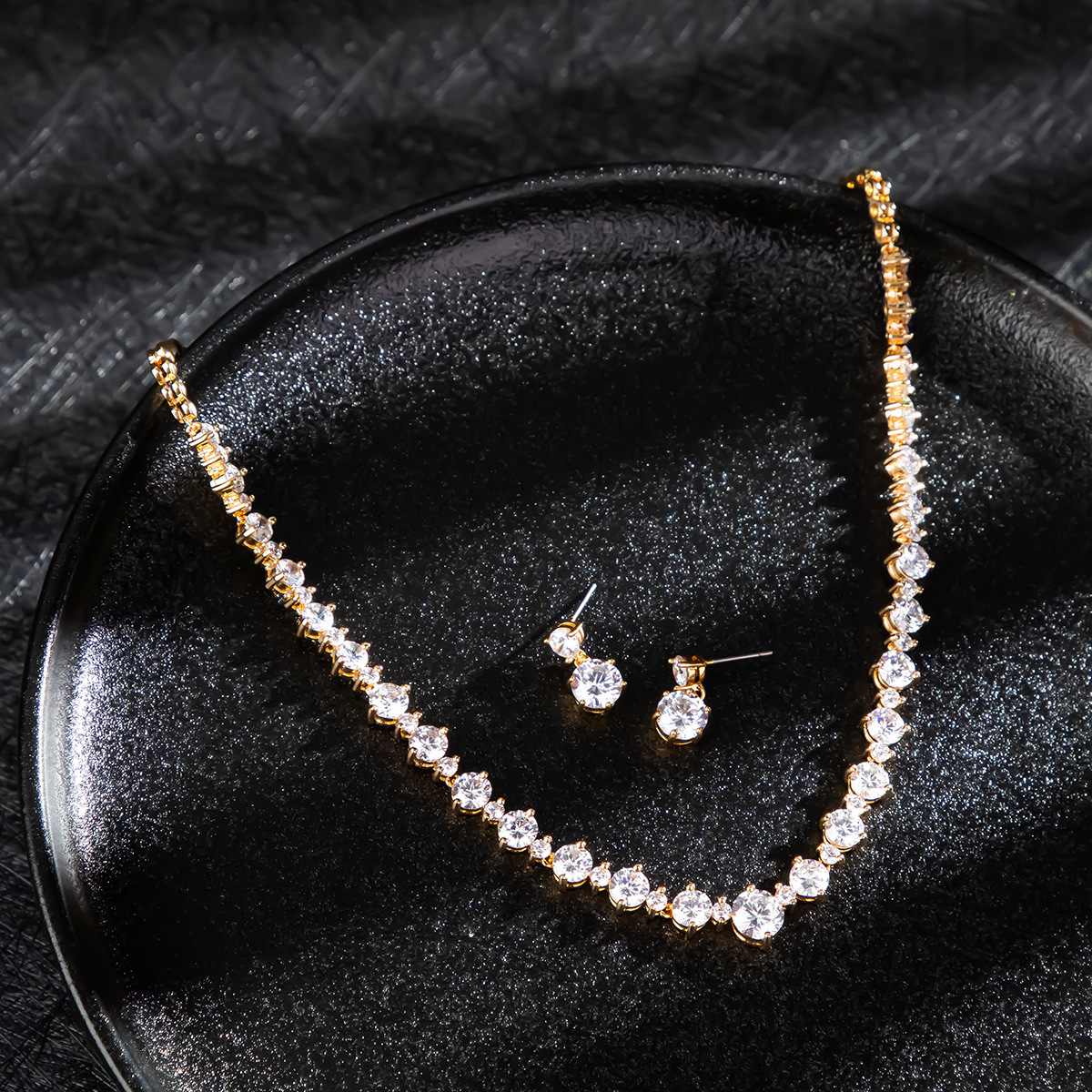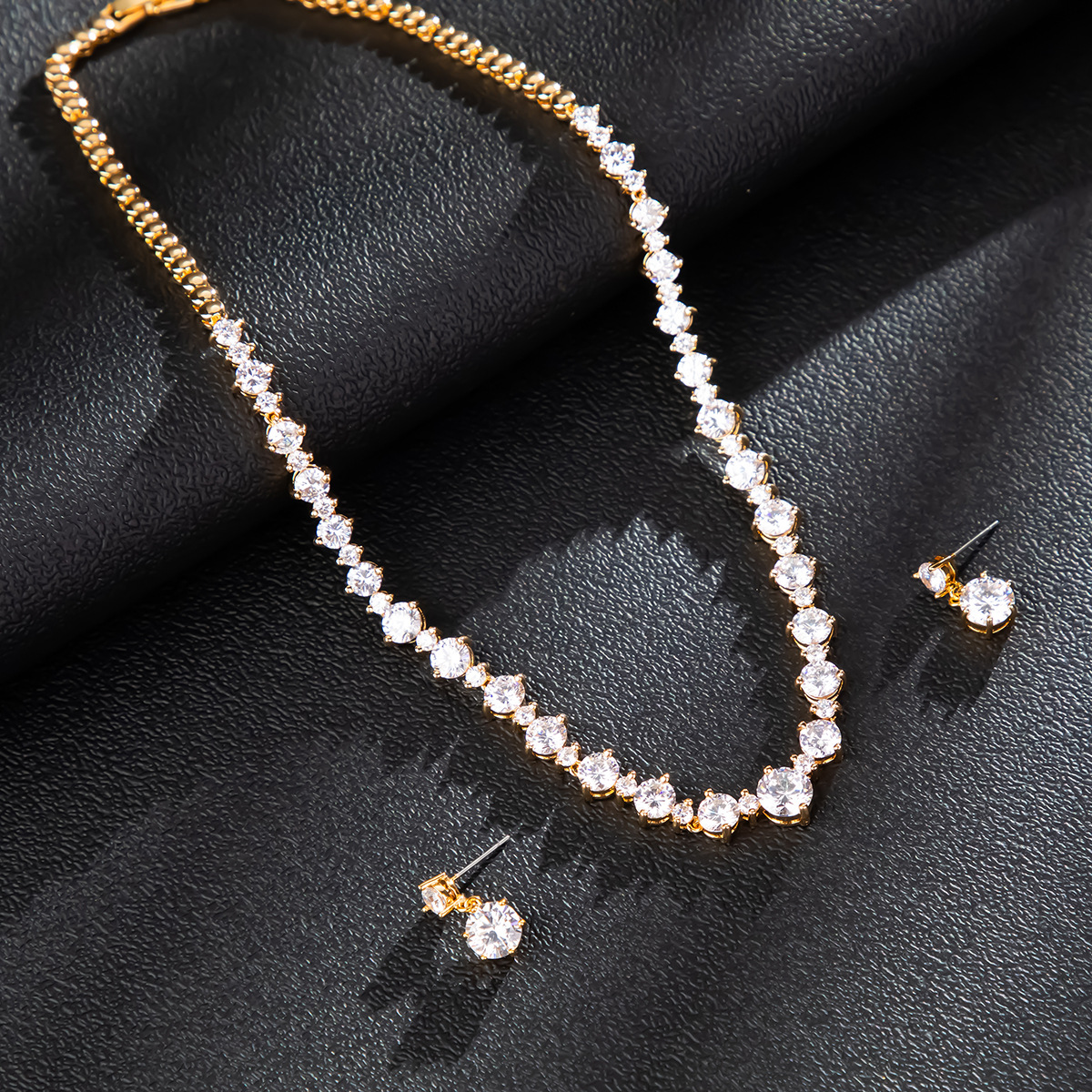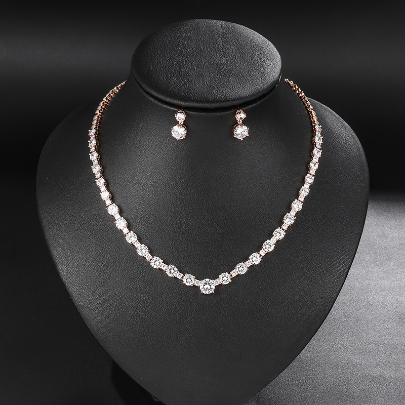 High-End European and American Bridal Zircon Jewelry Set Bridesmaid Earrings Necklace Combination Feminine Gorgeous Jewelry