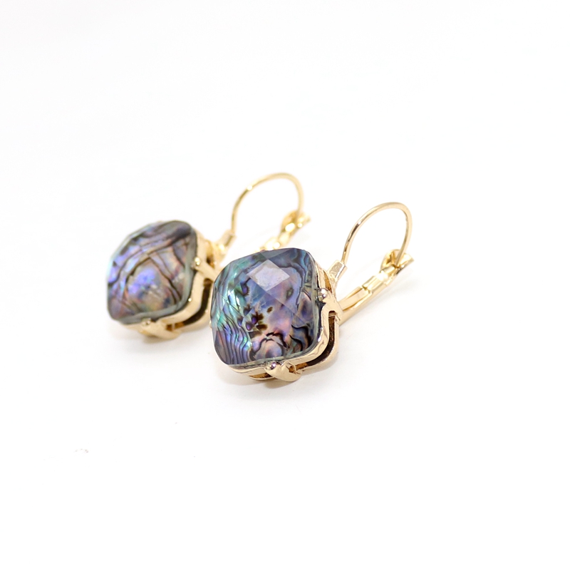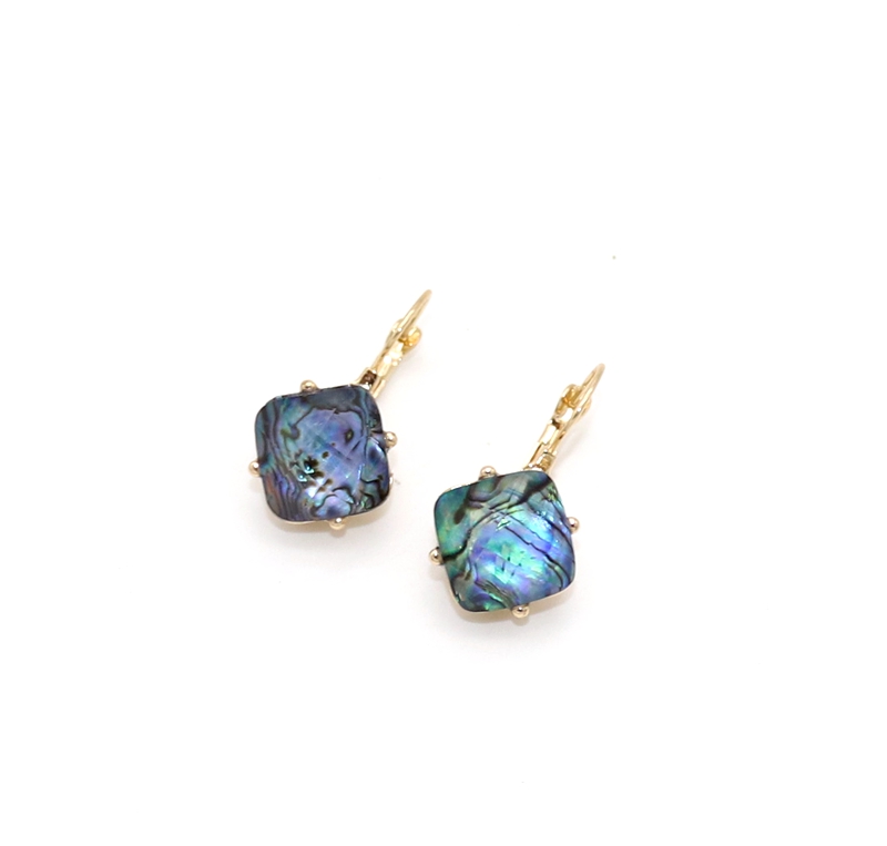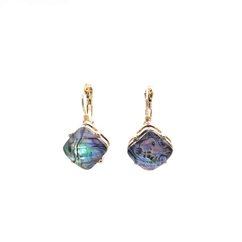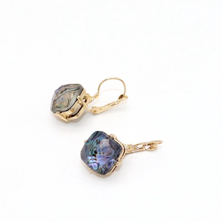 欧美饰品 鲍鱼贝刻面材料镶嵌 镂空立体精美耳环