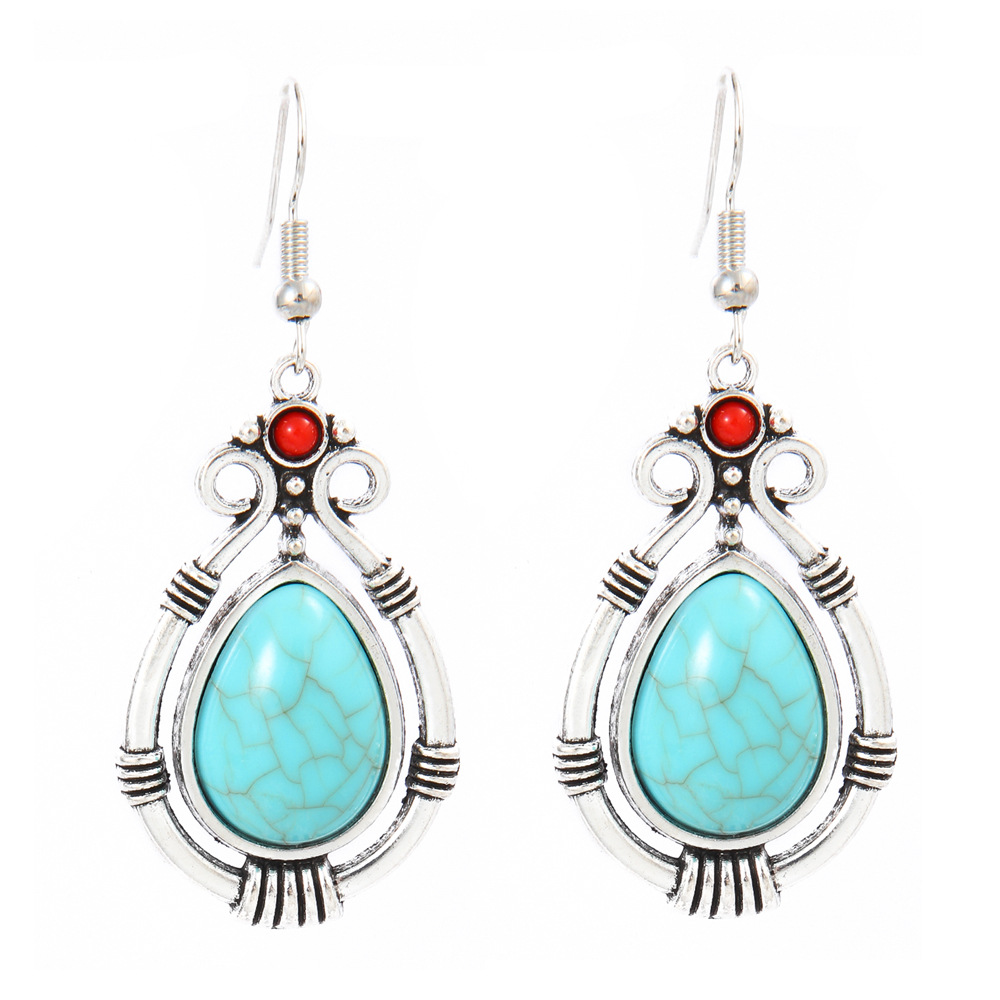 New Fashion Retro Palace Earrings Women's Personalized Turquoise Accessories Creative Water Drop Alloy Earrings Jewelry Wholesale