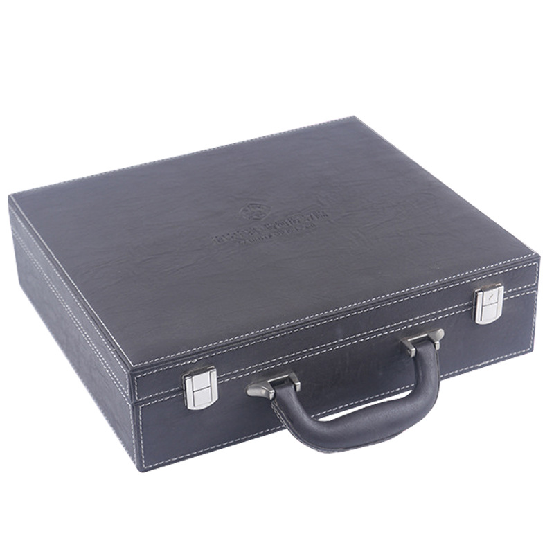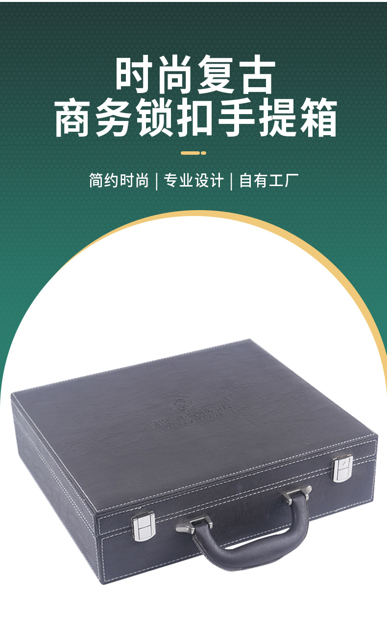 Cowhide Briefcase Fashion Retro Gift Box Lock Suitcase Black Confidential Document Storage Box Manufacturer Wholesale