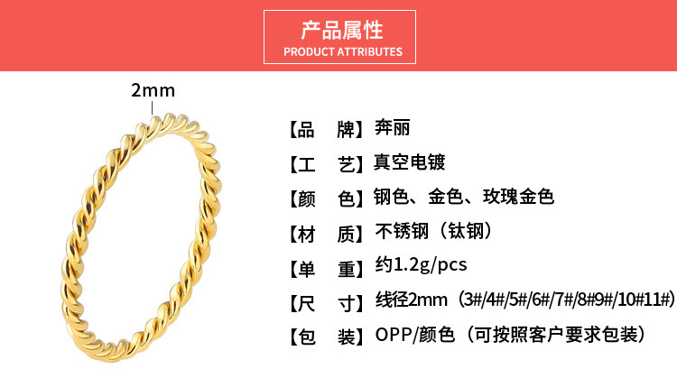 2025 Japanese and Korean Simple Work Clothing Fashion Titanium Steel Women's Twist Twist Pattern Couple Ring Stainless Steel Personalized Tail Ring Jewelry