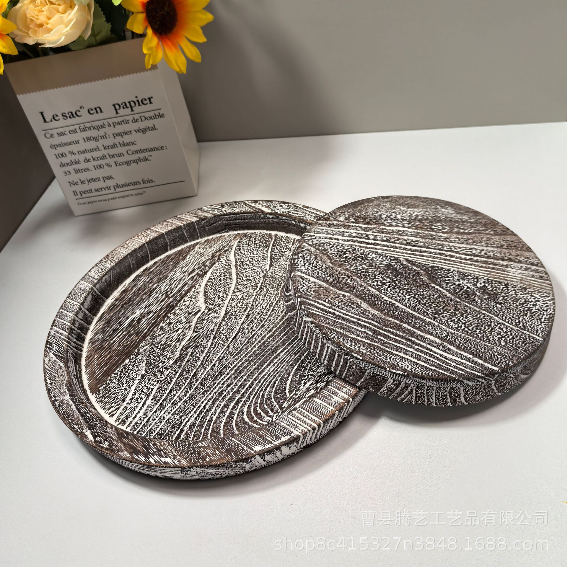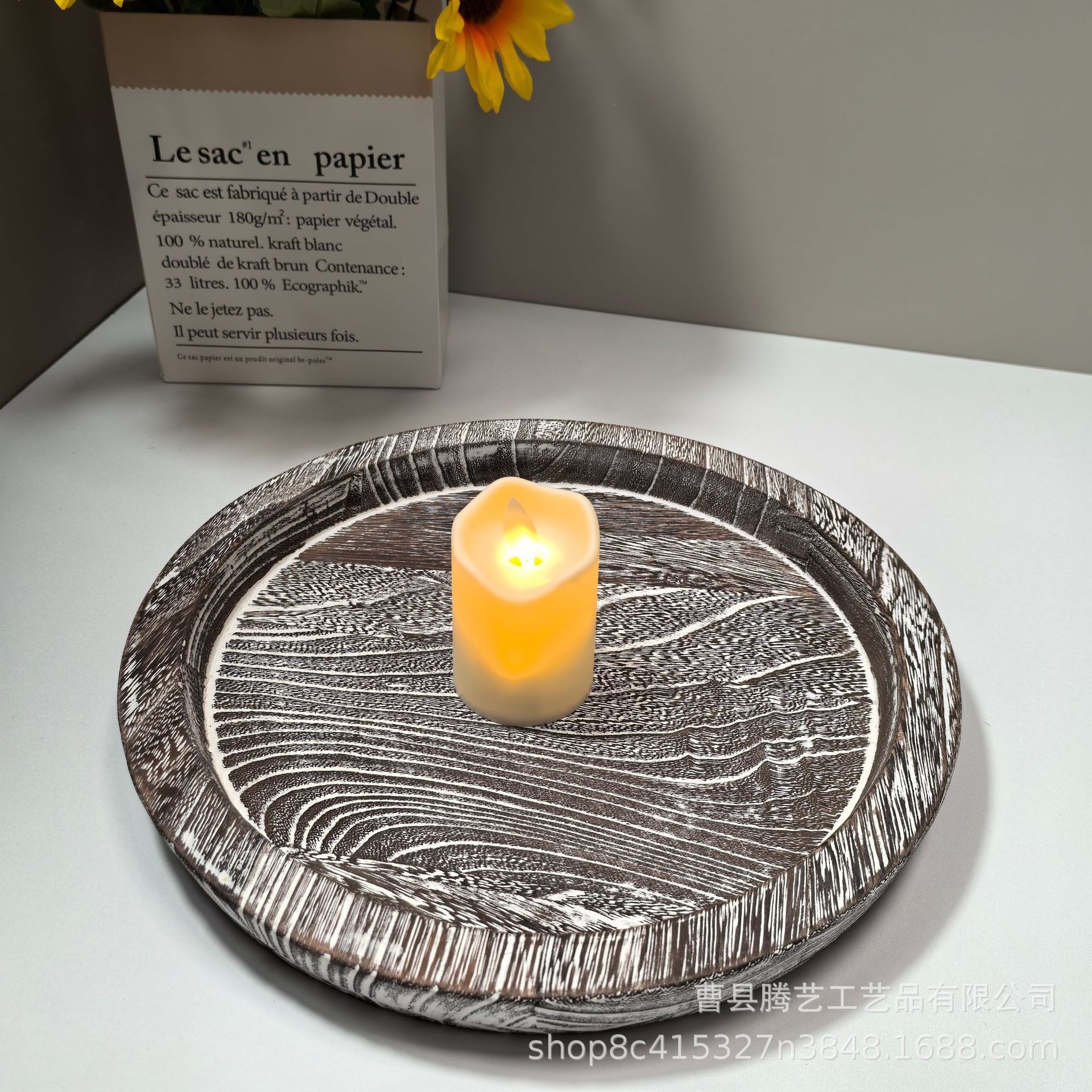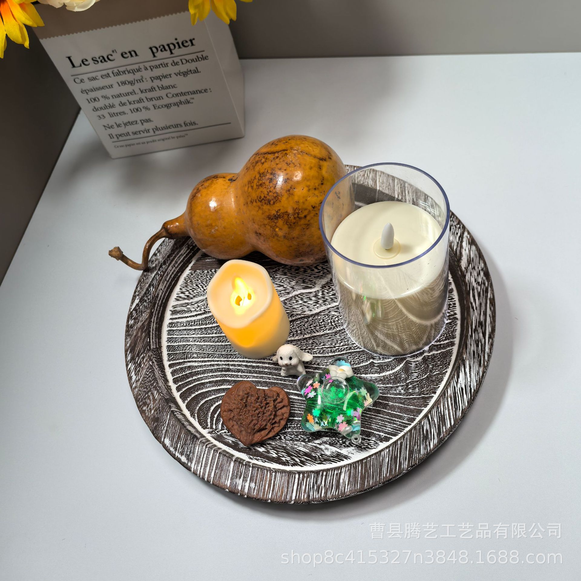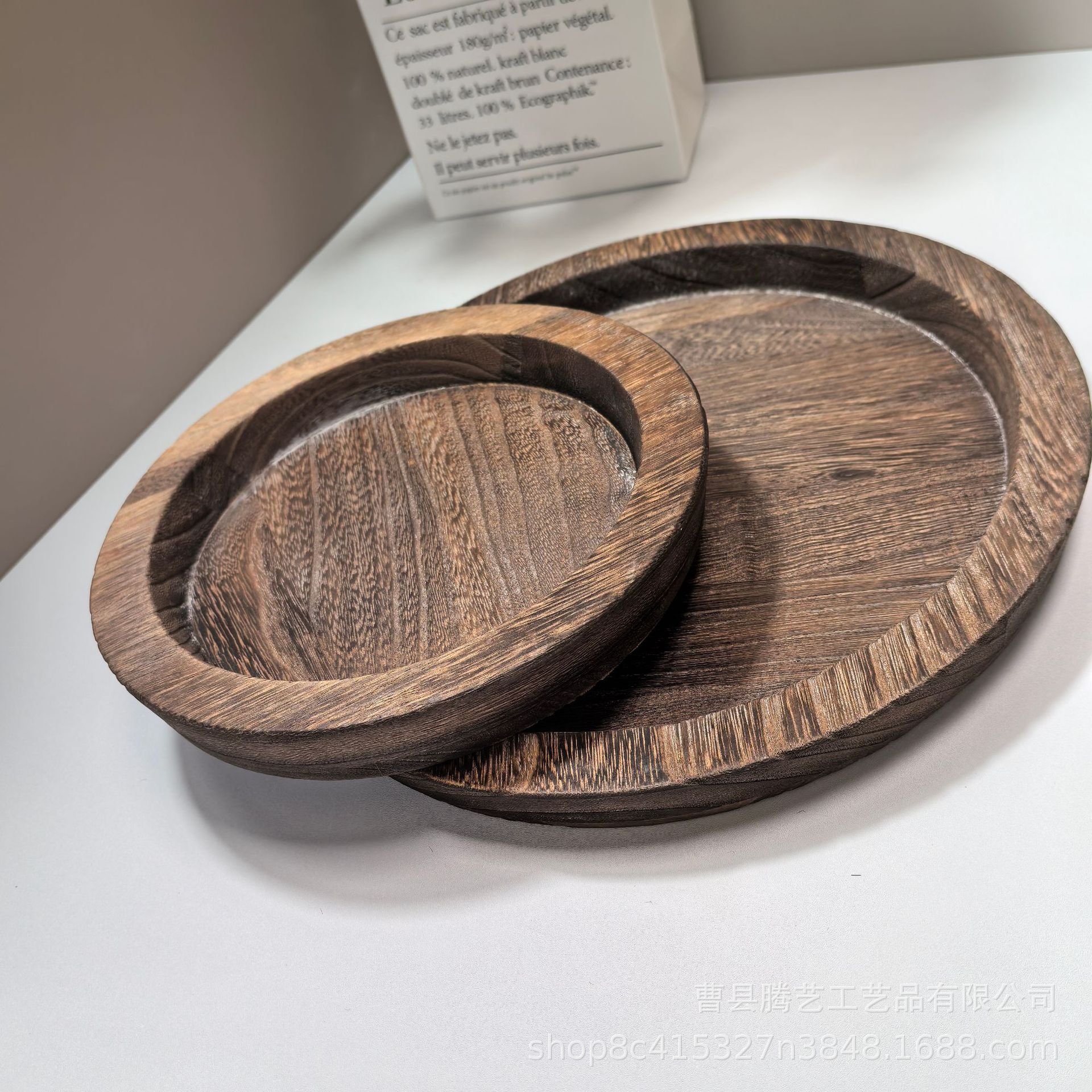 Oblique in stock Solid Wooden Tray Artistic Decoration Ornaments Candlestick Wooden Tray Fruit Snacks Wooden Storage Tray Cross-border