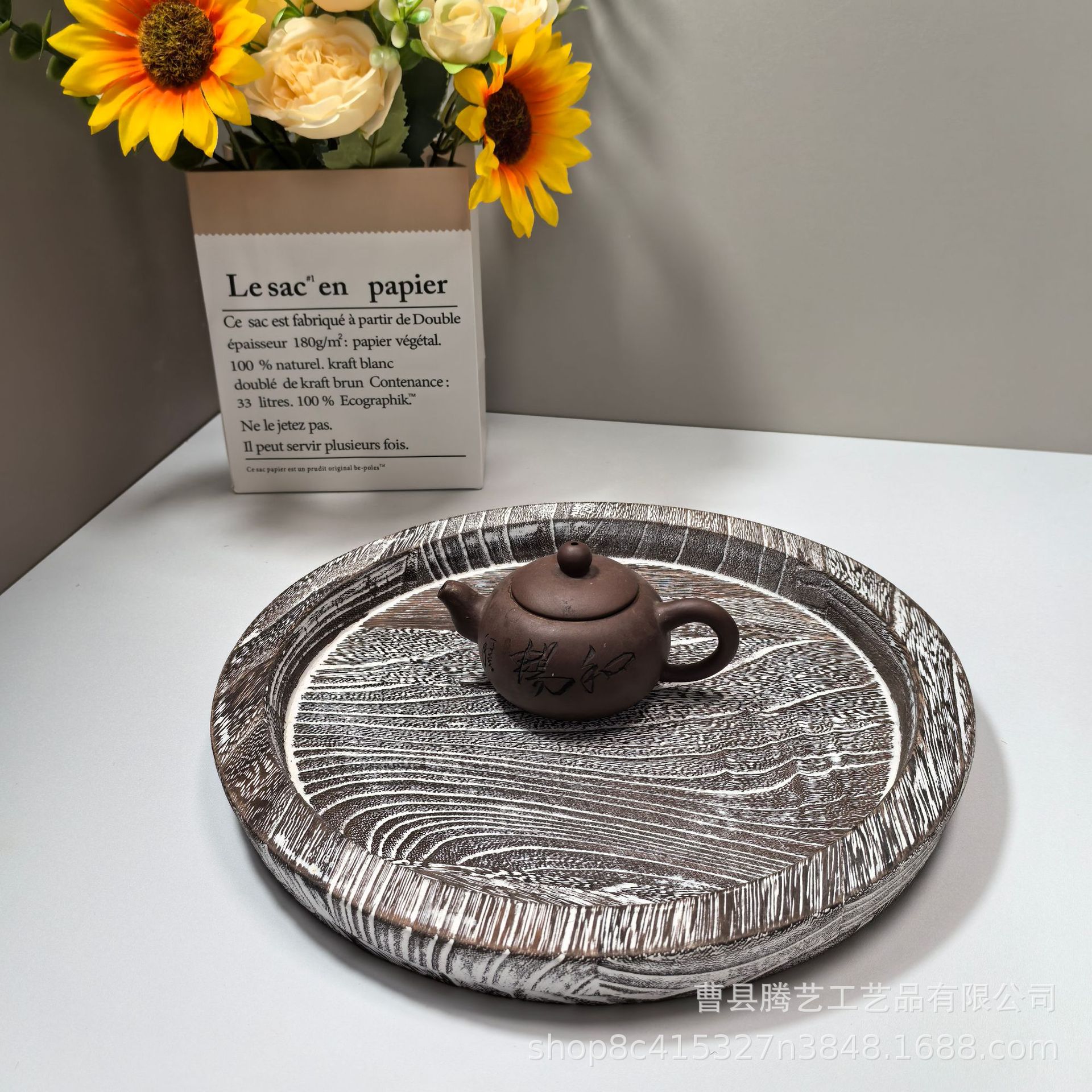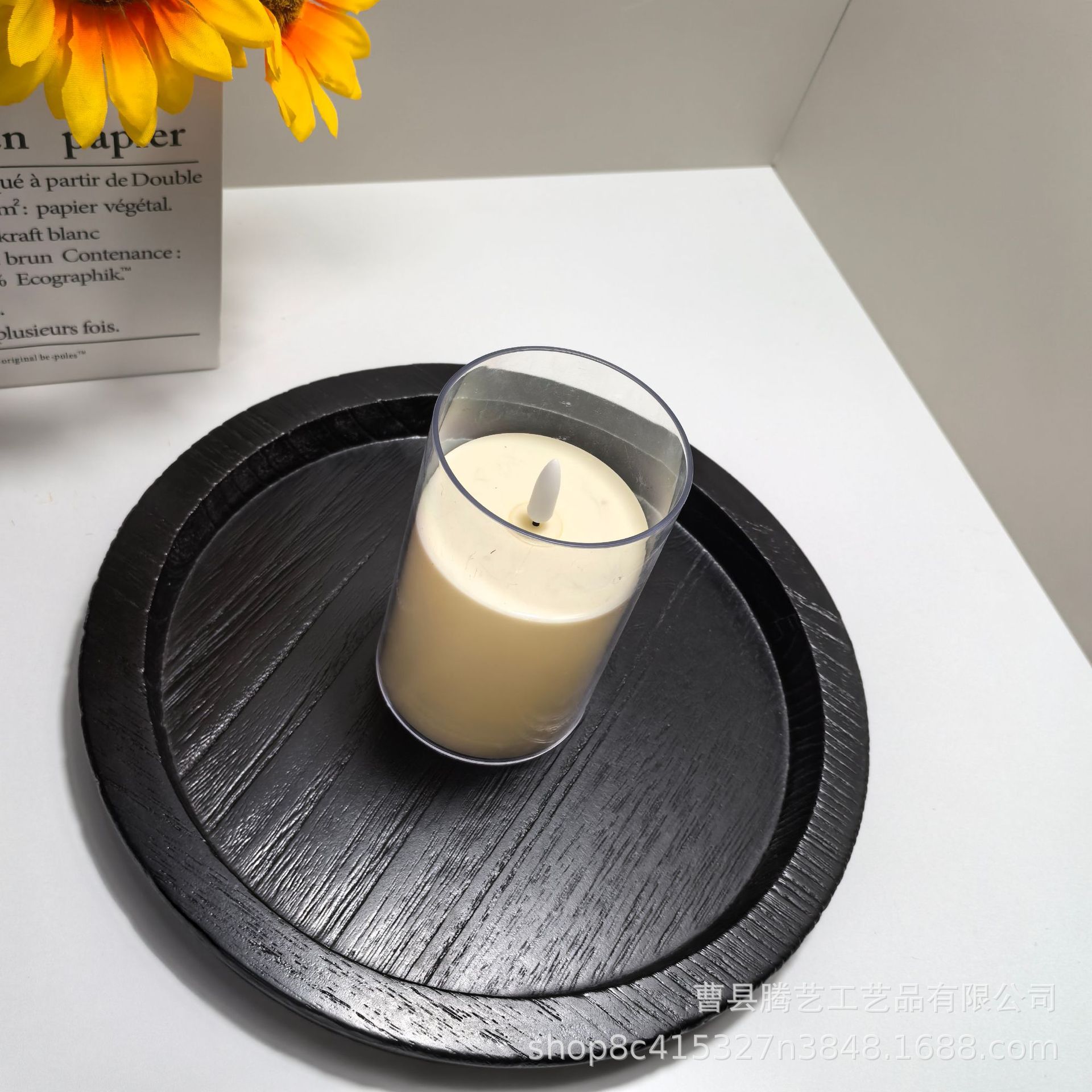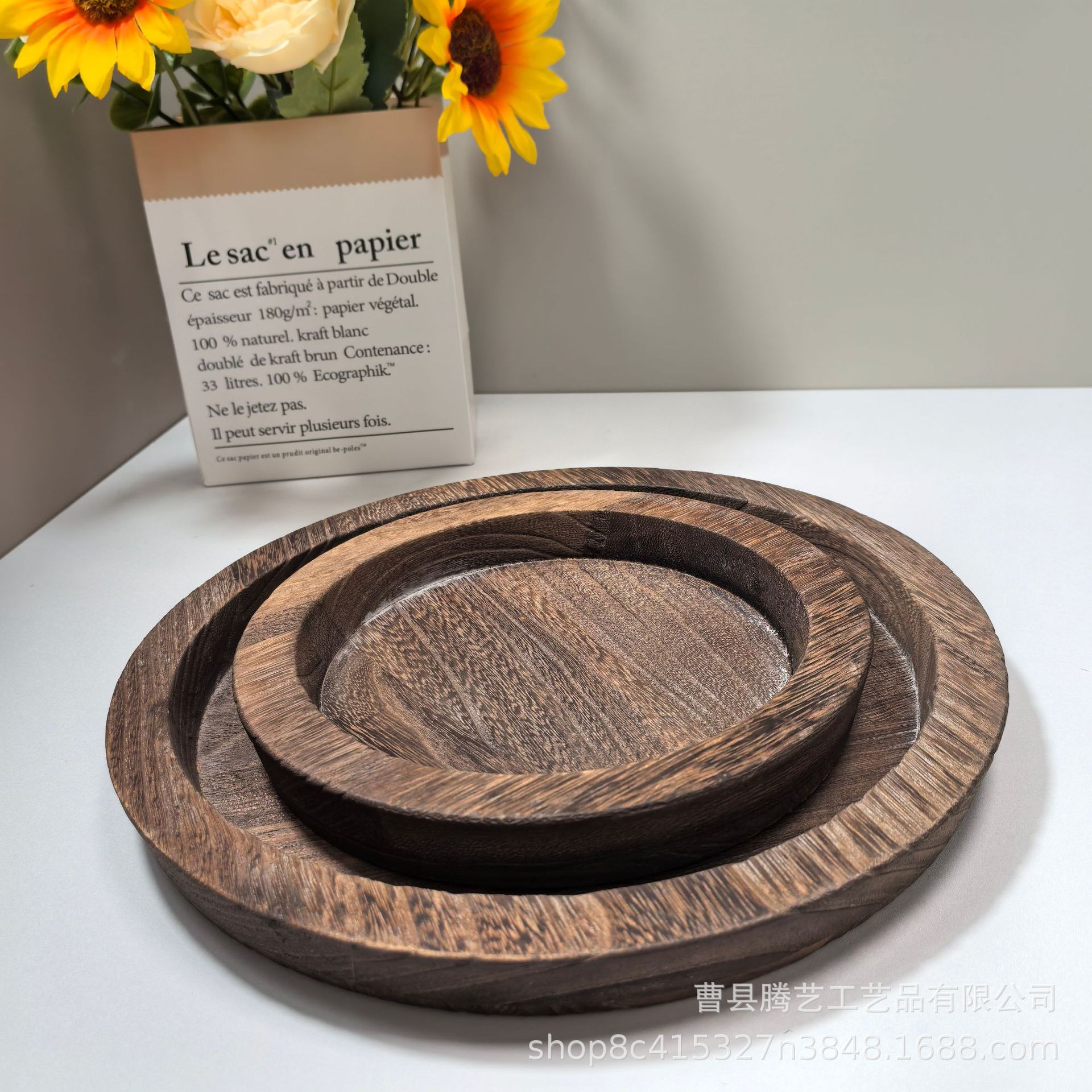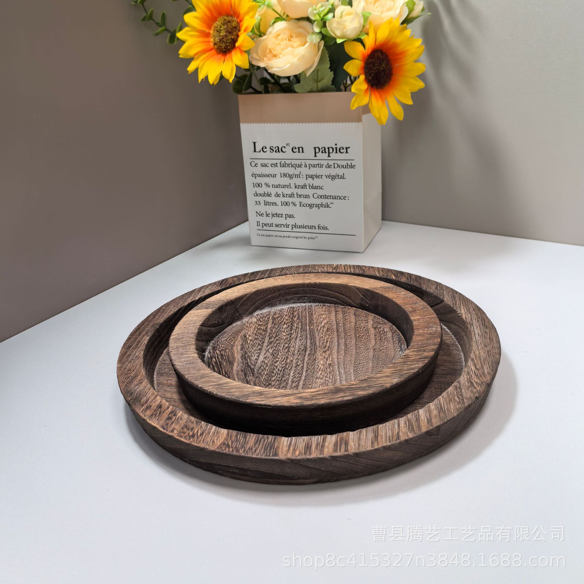 Oblique in stock Solid Wooden Tray Artistic Decoration Ornaments Candlestick Wooden Tray Fruit Snacks Wooden Storage Tray Cross-border
