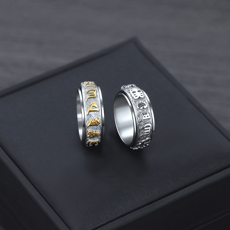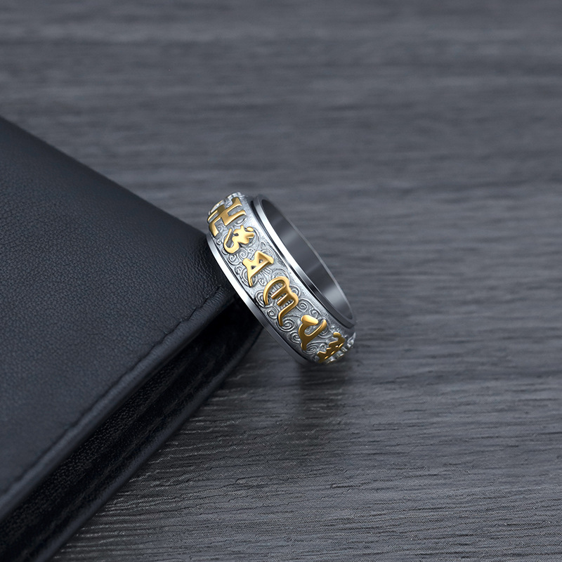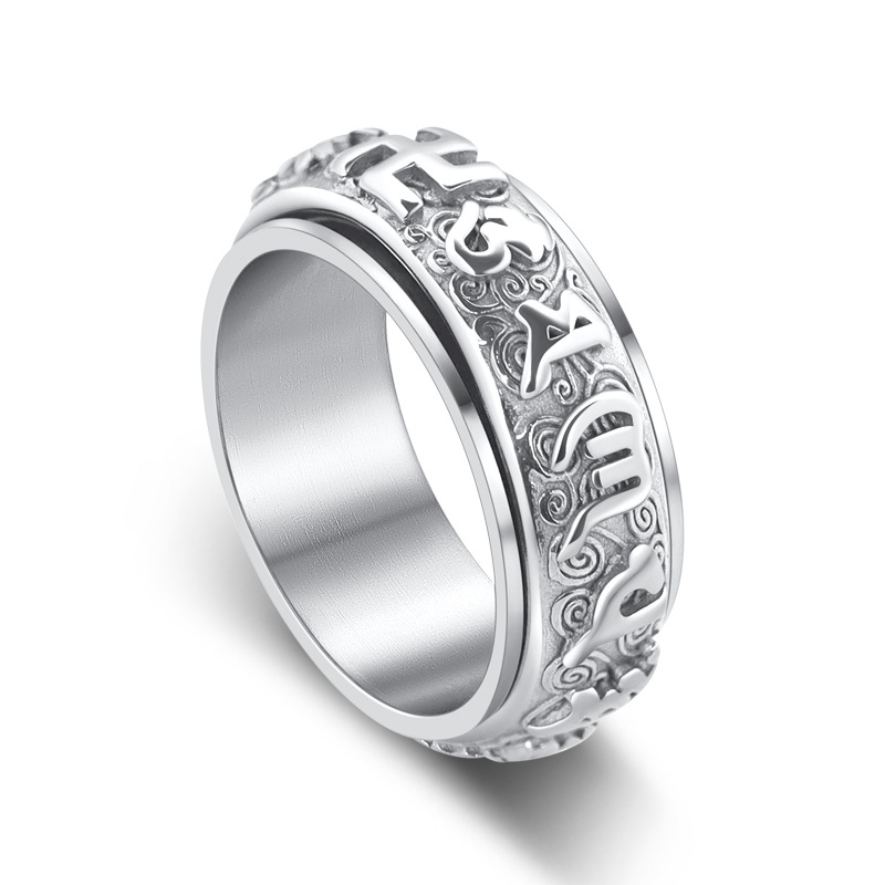 Six-Character Mantra Rotating Titanium Steel Men's Ring Personalized Niche Stainless Steel Jewelry Wholesale Non-Fading Rotating Retro