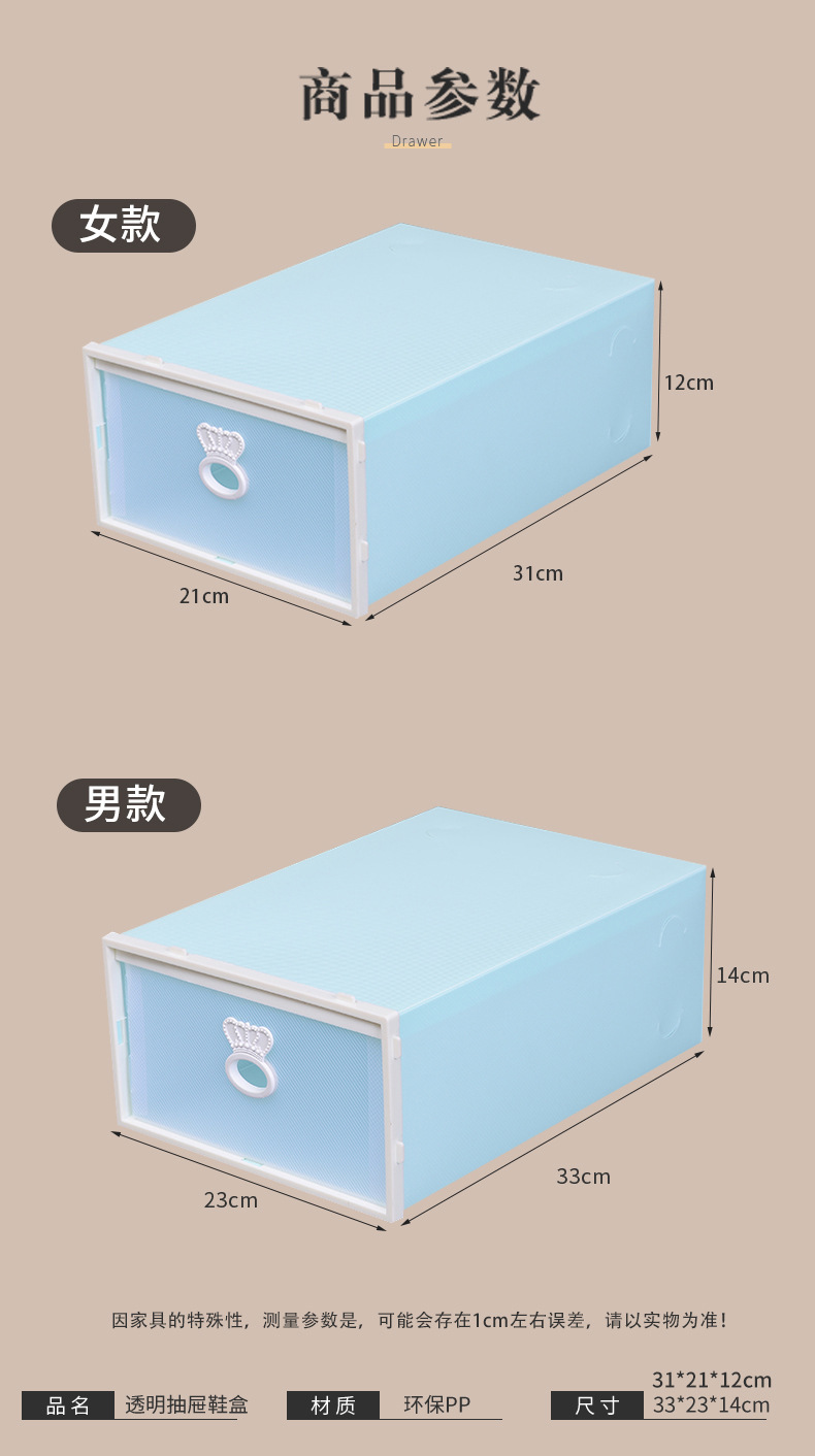 Extra large crown drawer shoe box storage transparent shoe box factory direct dust-proof thick storage box PP plastic box