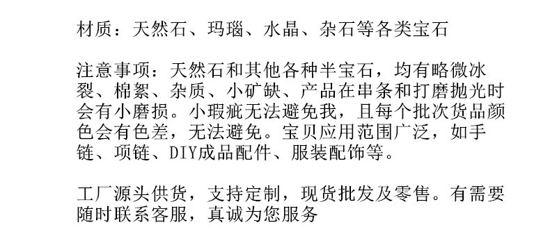 4:天然的石头,水晶不可避免有天然的棉絮,冰裂,矿缺,单珠大小有差异,请亲们拍下前细心阅读描述。