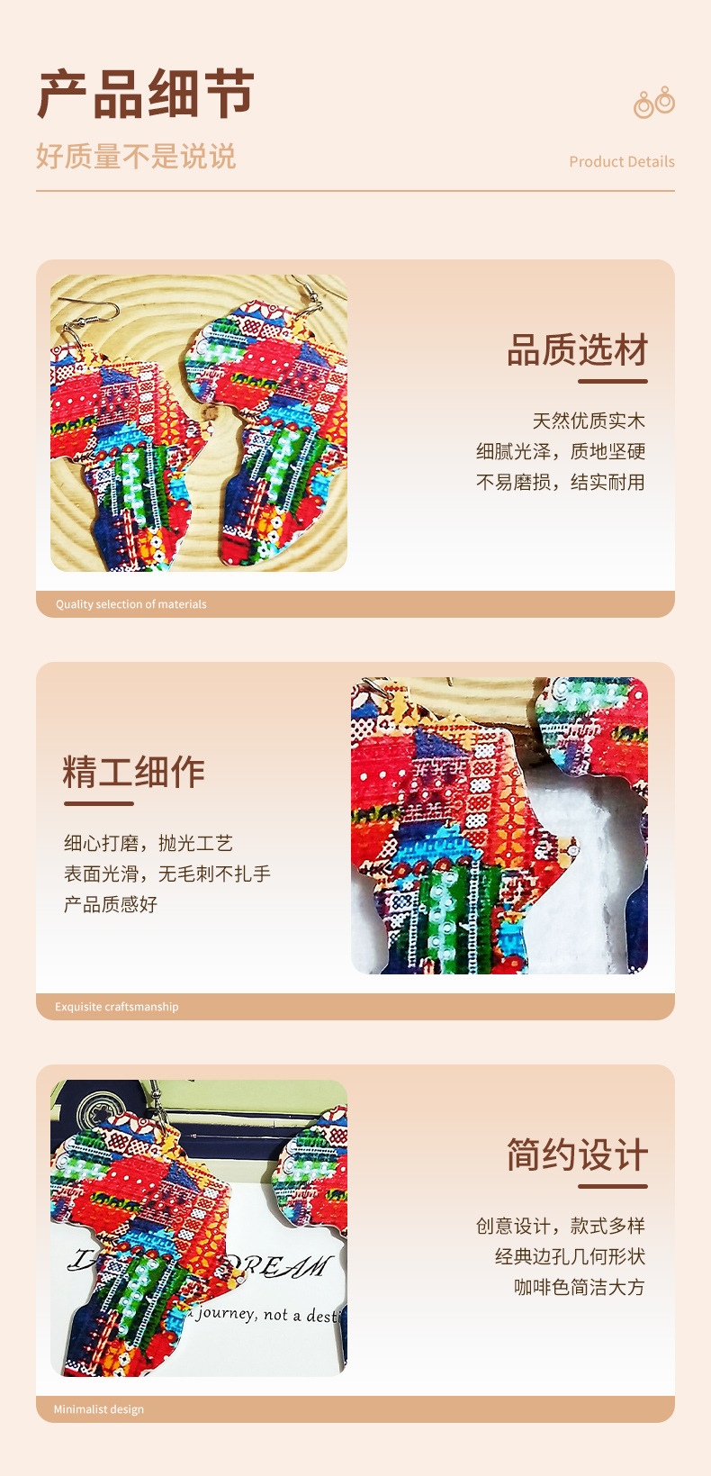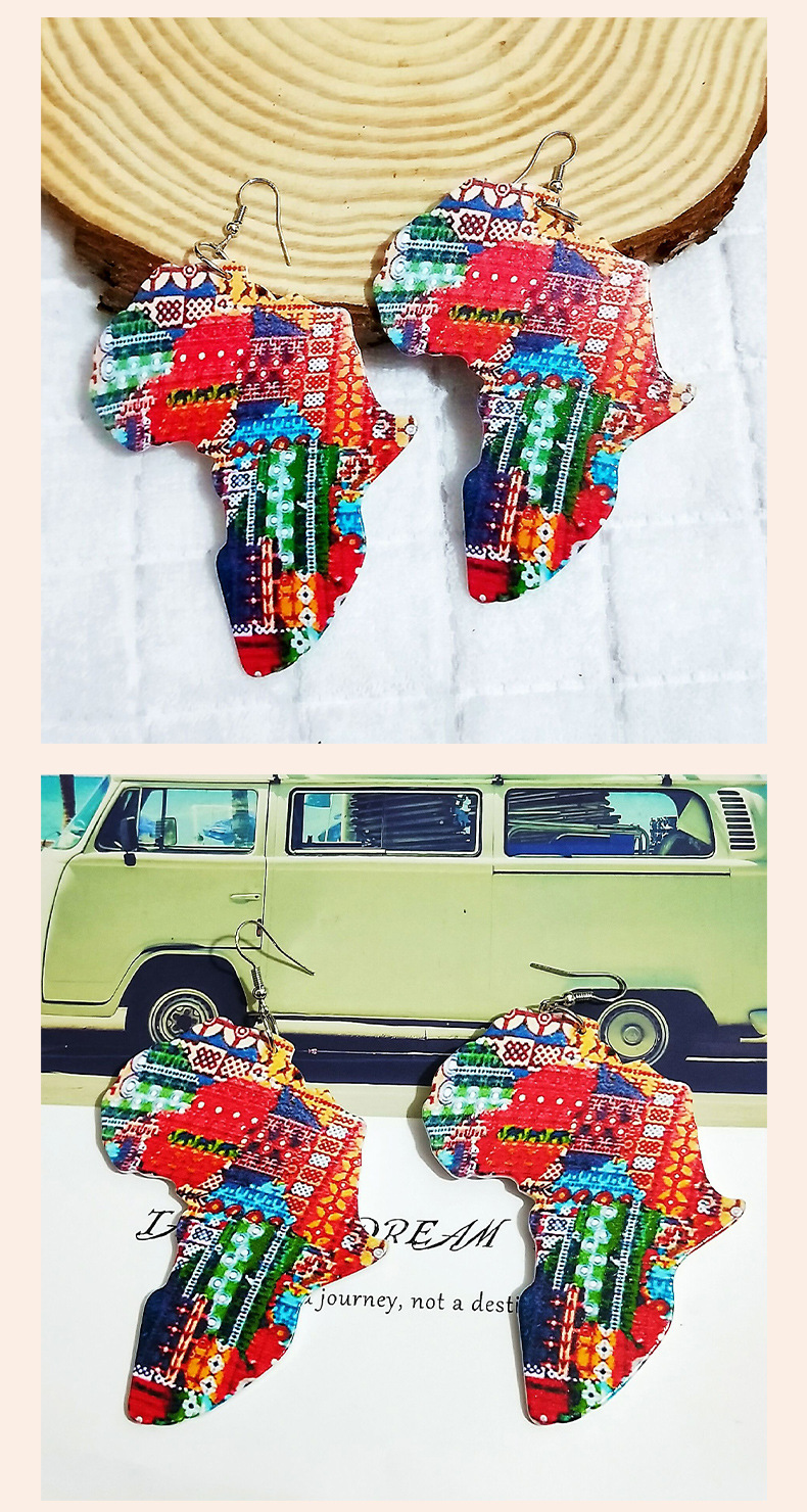 AliExpress ebay Hot Sale Laser Engraving Printing Painted Africa Map Wooden Earrings Earrings Earrings Women